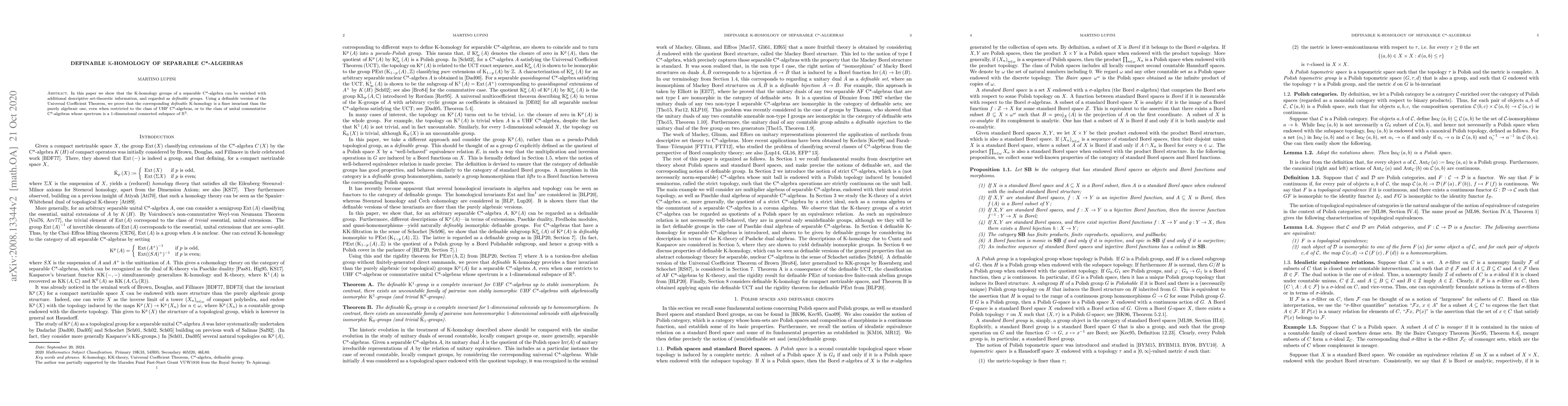 This paper demonstrates that separable C*-algebras' $\mathrm{K}$-homology groups can be enhanced with definable set-theoretic properties, establishing them as definable groups. It utilizes a definable Universal Coefficient Theorem to show that this definable $\mathrm{K}$-homology is a more nuanced invariant than the standard algebraic $\mathrm{K}$-homology.