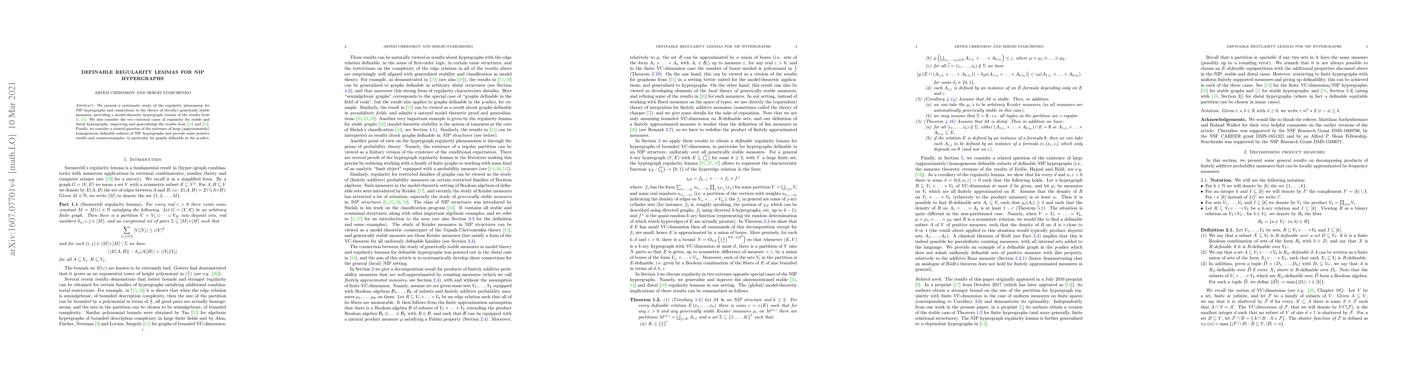 We present a systematic study of the regularity phenomena for NIP hypergraphs and connections to the theory of (locally) generically stable measures, providing a model-theoretic hypergraph version of the results from [L. Lov\'asz, B. Szegedy, "Regularity partitions and the topology of graphons", An irregular mind, Springer Berlin Heidelberg, 2010, 415-446]. Besides, we revise the two extremal cases of regularity for stable and distal hypergraphs, improving and generalizing the results from [A. Chernikov, S. Starchenko, "Regularity lemma for distal structures", J. Eur. Math. Soc. 20 (2018), 2437-2466] and [M. Malliaris, S. Shelah, "Regularity lemmas for stable graphs", Transactions of the American Mathematical Society, 366.3, 2014, 1551-1585]. Finally, we consider a related question of the existence of large (approximately) homogeneous definable subsets of NIP hypergraphs and provide some positive results and counterexamples.
