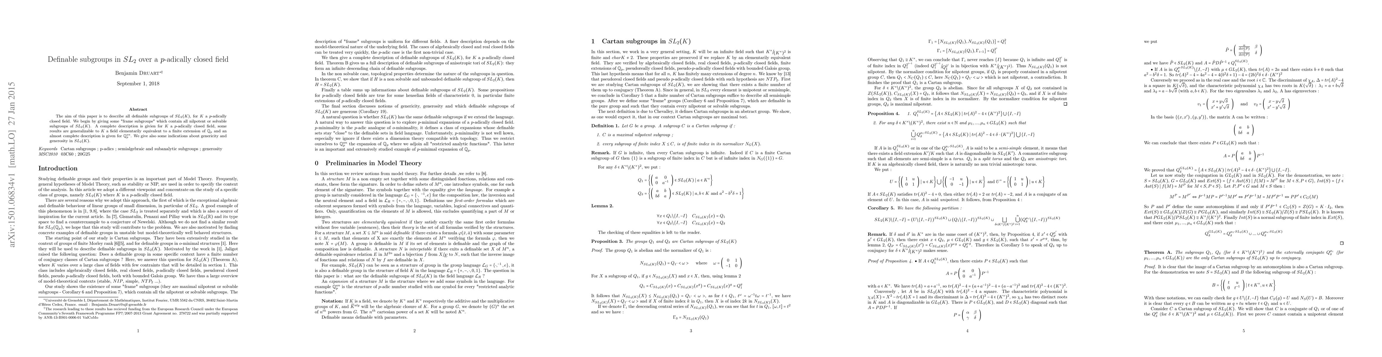 This paper details all definable subgroups of SL₂(K) over a p-adically closed field K, identifying frame subgroups that encompass nilpotent and solvable subgroups. Results are fully described for p-adically closed fields and partially for fields elementarily equivalent to finite extensions of Qₚ.