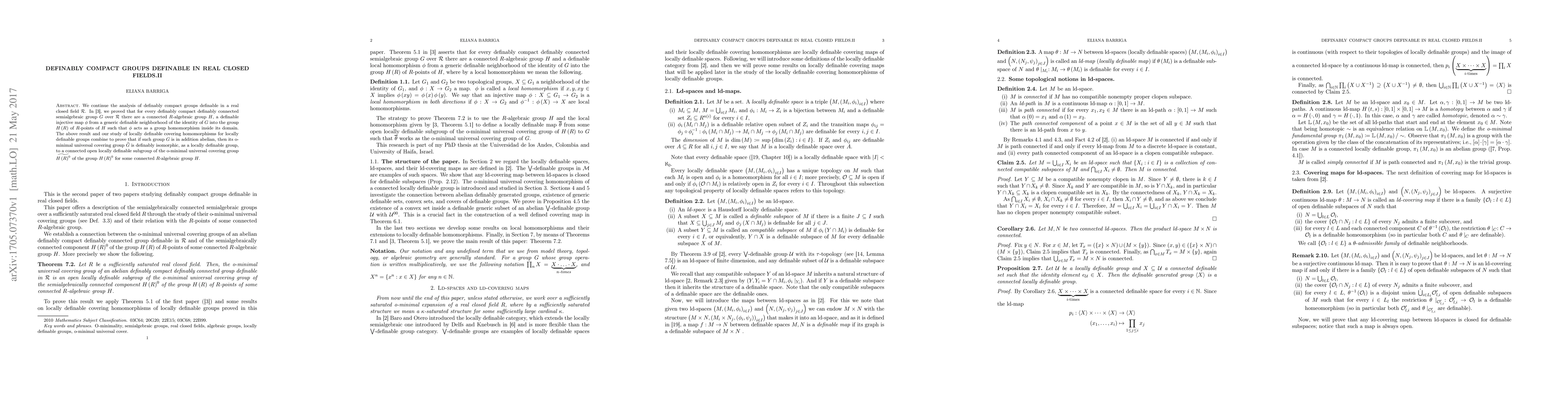 We continue the analysis of definably compact groups definable in a real closed field $\mathcal{R}$. In [3], we proved that for every definably compact definably connected semialgebraic group $G$ over $\mathcal{R}$ there are a connected $R$-algebraic group $H$, a definable injective map $\phi$ from a generic definable neighborhood of the identity of $G$ into the group $H\left(R\right)$ of $R$-points of $H$ such that $\phi$ acts as a group homomorphism inside its domain. The above result and our study of locally definable covering homomorphisms for locally definable groups combine to prove that if such group $G$ is in addition abelian, then its o-minimal universal covering group $\widetilde{G}$ is definably isomorphic, as a locally definable group, to a connected open locally definable subgroup of the o-minimal universal covering group $\widetilde{H\left(R\right)^{0}}$ of the group $H\left(R\right)^{0}$ for some connected $R$-algebraic group $H$.