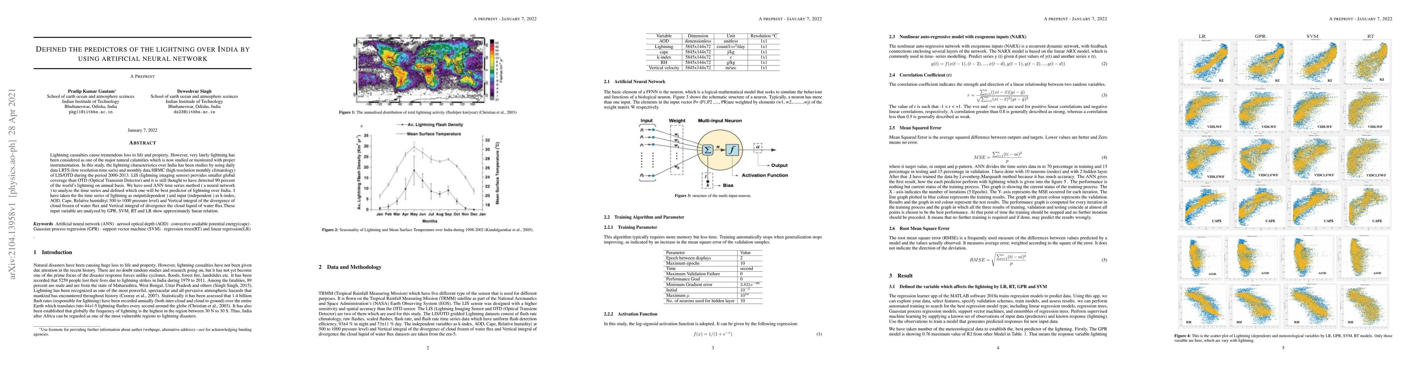 A study used artificial neural networks to predict lightning over India, identifying key variables such as k-index and air quality as significant predictors of lightning occurrences.
