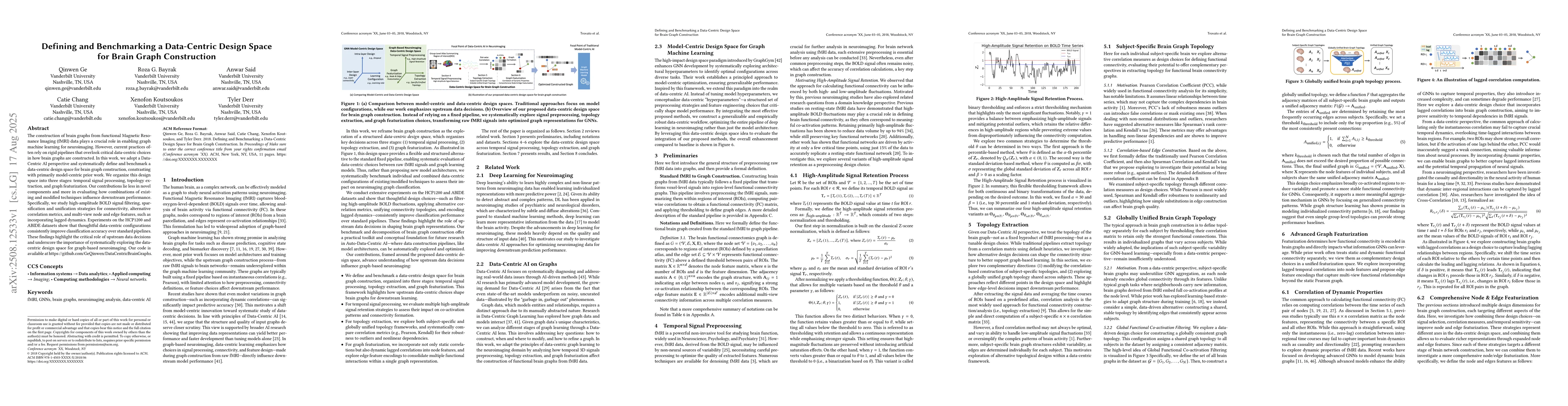 The construction of brain graphs from functional Magnetic Resonance Imaging (fMRI) data plays a crucial role in enabling graph machine learning for neuroimaging. However, current practices often rely on rigid pipelines that overlook critical data-centric choices in how brain graphs are constructed. In this work, we adopt a Data-Centric AI perspective and systematically define and benchmark a data-centric design space for brain graph construction, constrasting with primarily model-centric prior work. We organize this design space into three stages: temporal signal processing, topology extraction, and graph featurization. Our contributions lie less in novel components and more in evaluating how combinations of existing and modified techniques influence downstream performance. Specifically, we study high-amplitude BOLD signal filtering, sparsification and unification strategies for connectivity, alternative correlation metrics, and multi-view node and edge features, such as incorporating lagged dynamics. Experiments on the HCP1200 and ABIDE datasets show that thoughtful data-centric configurations consistently improve classification accuracy over standard pipelines. These findings highlight the critical role of upstream data decisions and underscore the importance of systematically exploring the data-centric design space for graph-based neuroimaging. Our code is available at https://github.com/GeQinwen/DataCentricBrainGraphs.
