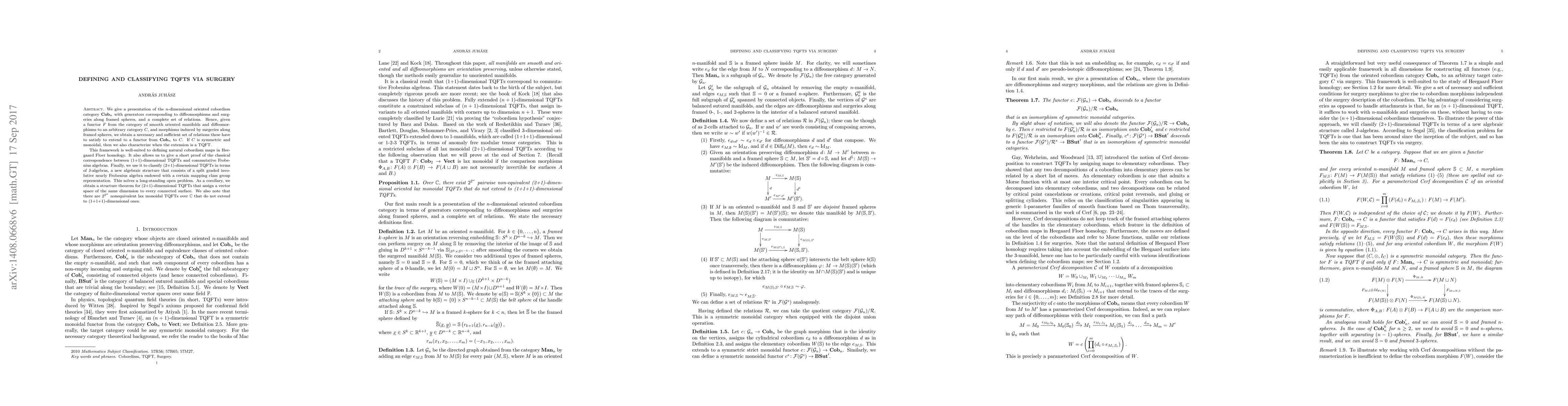 This paper introduces a framework for defining and classifying Topological Quantum Field Theories (TQFTs) using the $n$-dimensional oriented cobordism category $ ext{Cob}_n$, providing a new structure theorem for (2+1)-dimensional TQFTs.