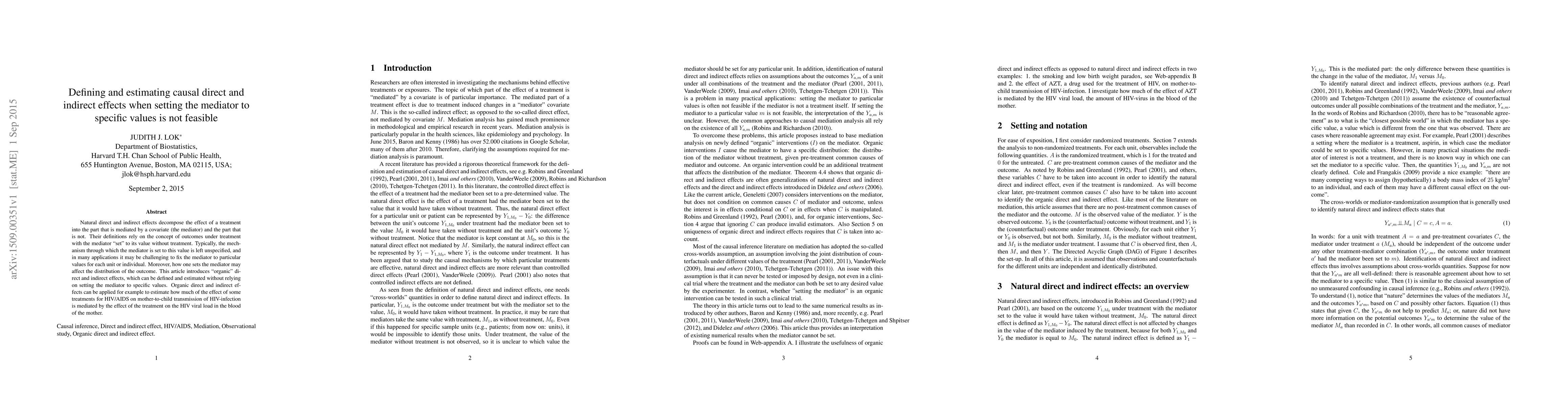 This paper introduces "organic" direct and indirect effects to decompose treatment impacts when setting the mediator to specific values is impractical. These effects can be defined and estimated without manipulating the mediator, useful for applications like estimating HIV treatment effects on mother-to-child transmission mediated by viral load.