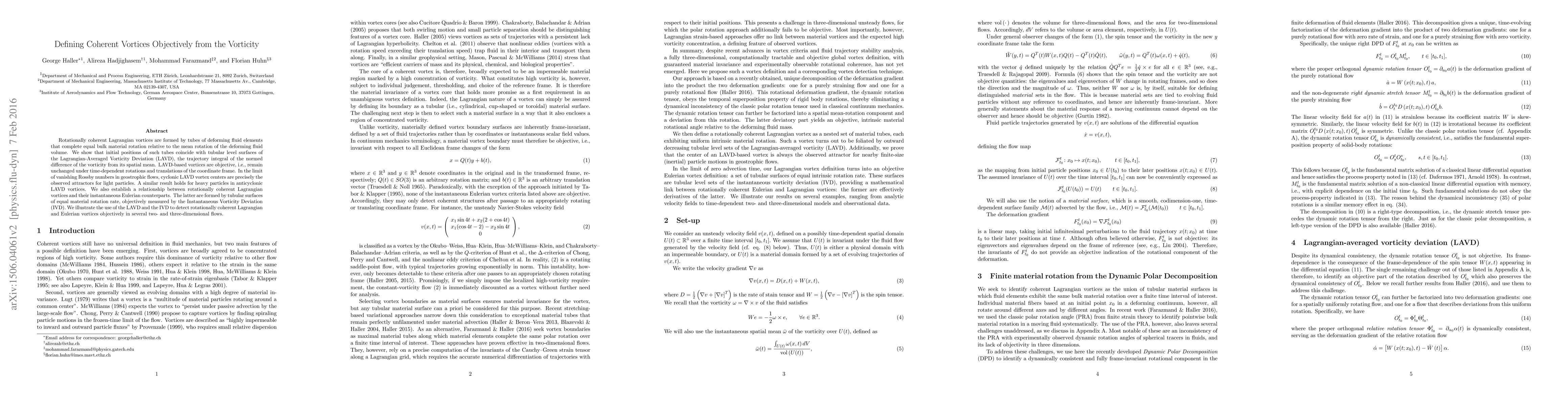 Researchers developed a method to identify objective vortices in fluids by analyzing tubular level surfaces of 'Lagrangian-Averaged Vorticity Deviation' (LAVD), which remain unchanged under rotations and translations.