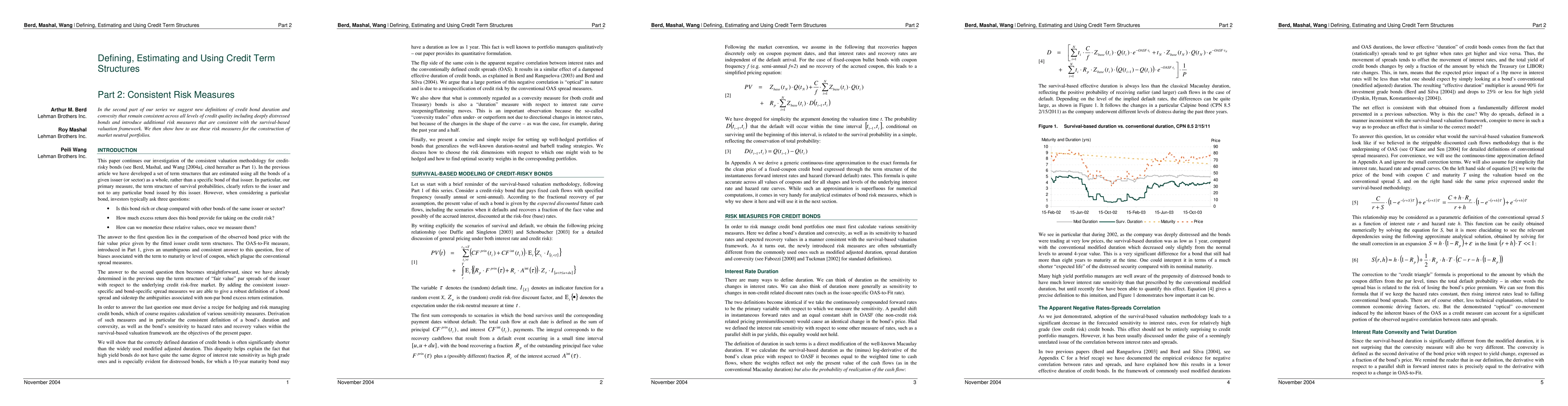 This paper proposes new definitions of credit bond duration and convexity that are consistent across all credit qualities, including distressed bonds. It also introduces additional risk measures aligned with a survival-based valuation framework and demonstrates their application in constructing market-neutral portfolios.