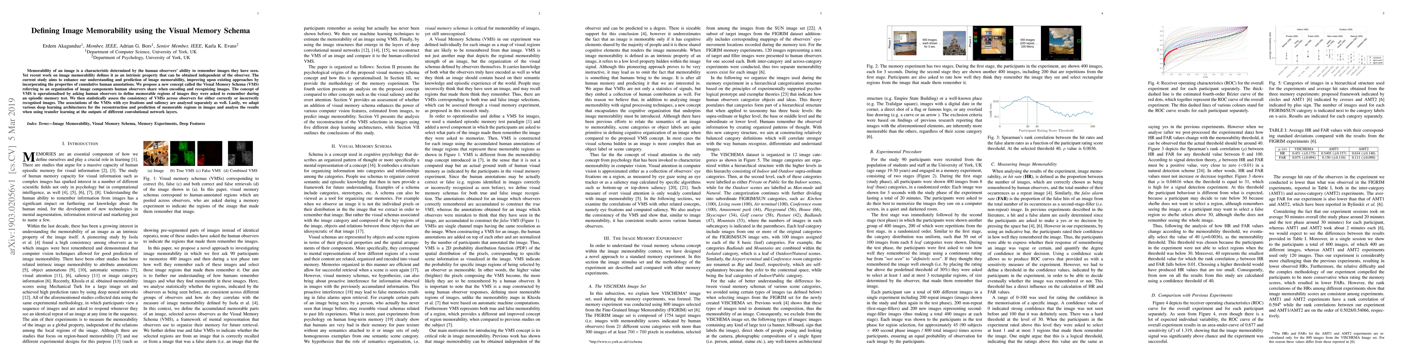 This study introduces the Visual Memory Schema (VMS) to predict image memorability by analyzing shared image components identified by human observers during episodic memory tests. The research also evaluates the consistency of VMSs across observers and explores their association with eye fixations and saliency, alongside deep learning techniques for predicting memorable regions.