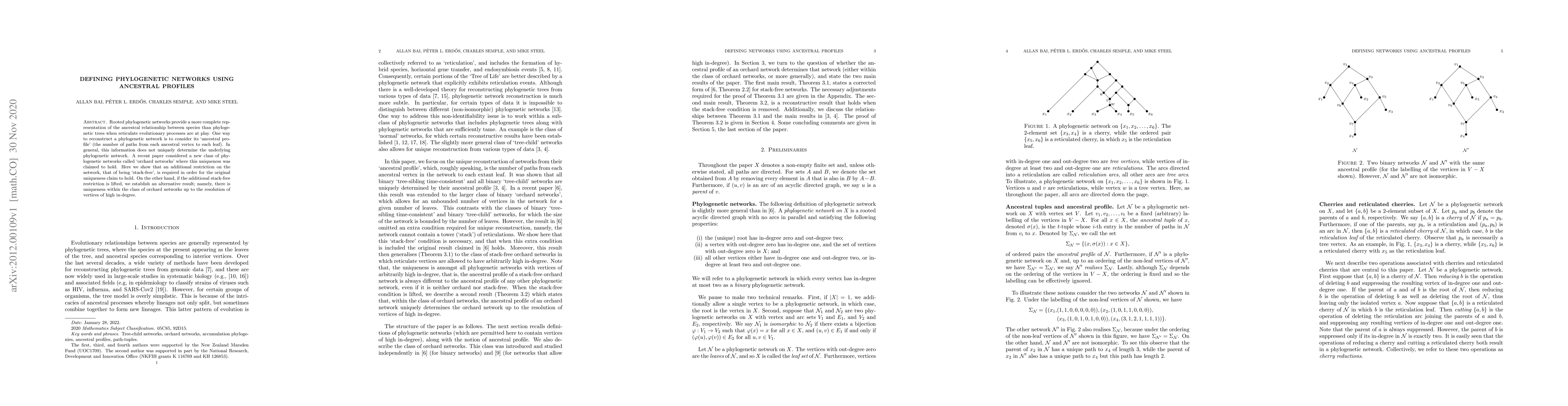 Rooted phylogenetic networks provide a more complete representation of the ancestral relationship between species than phylogenetic trees when reticulate evolutionary processes are at play. One way to reconstruct a phylogenetic network is to consider its `ancestral profile' (the number of paths from each ancestral vertex to each leaf). In general, this information does not uniquely determine the underlying phylogenetic network. A recent paper considered a new class of phylogenetic networks called `orchard networks' where this uniqueness was claimed to hold. Here we show that an additional restriction on the network, that of being `stack-free', is required in order for the original uniqueness claim to hold. On the other hand, if the additional stack-free restriction is lifted, we establish an alternative result; namely, there is uniqueness within the class of orchard networks up to the resolution of vertices of high in-degree.
