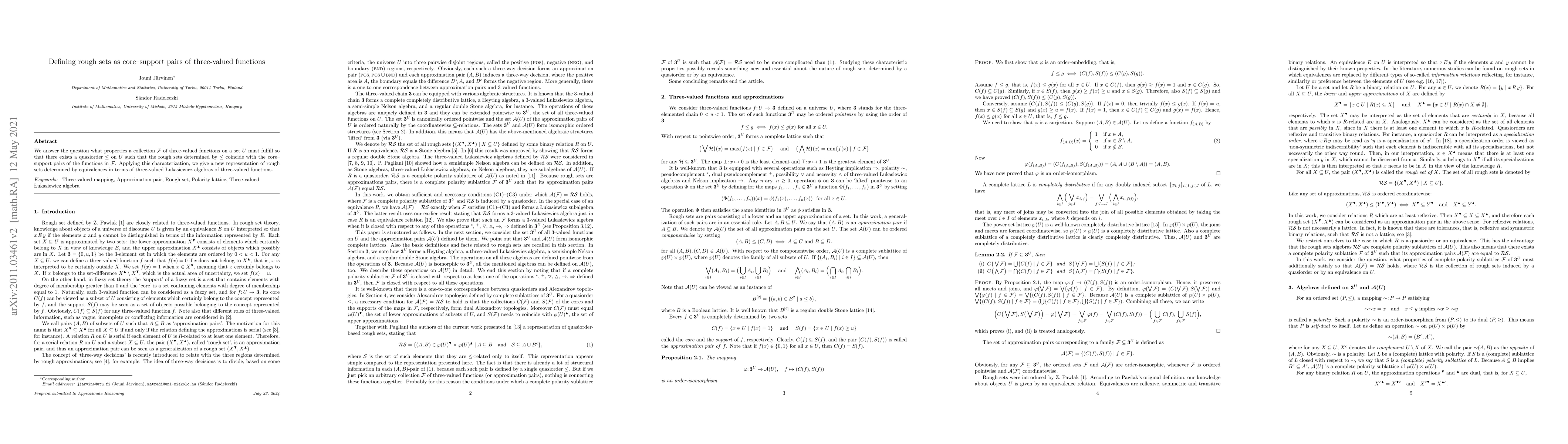 This paper investigates the conditions under which a collection of three-valued functions on a set can define rough sets via a quasiorder, establishing the equivalence between rough sets and core-support pairs of these functions. It also provides a new representation of rough sets determined by equivalences using three-valued {\L}ukasiewicz algebras.