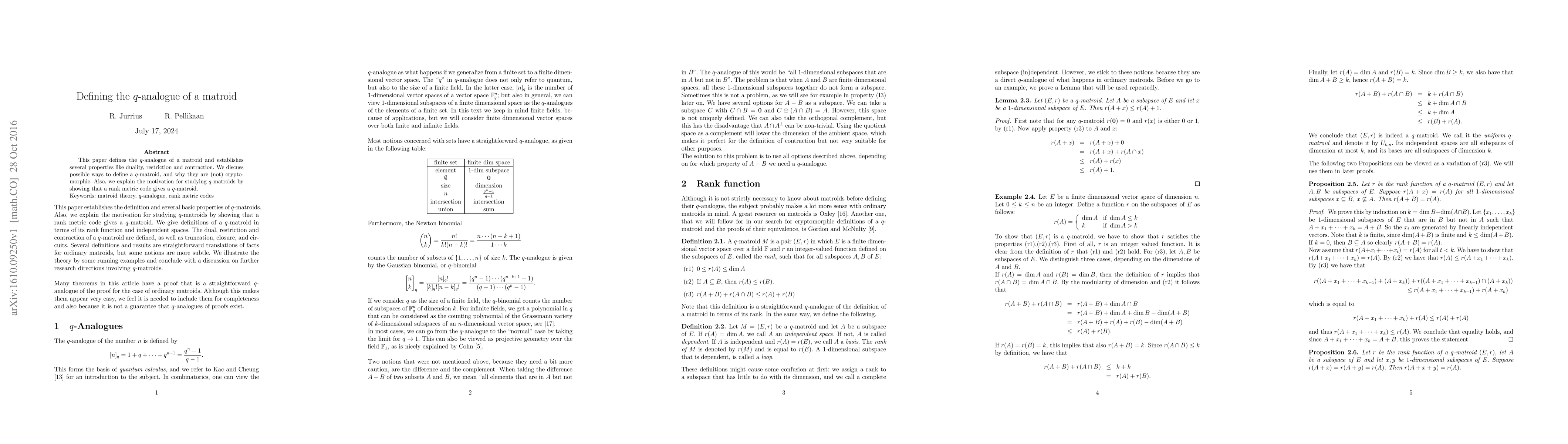This paper introduces the q-analogue of a matroid, exploring its properties including duality, restriction, and contraction, and discusses the motivations behind studying q-matroids through the example of rank metric codes.