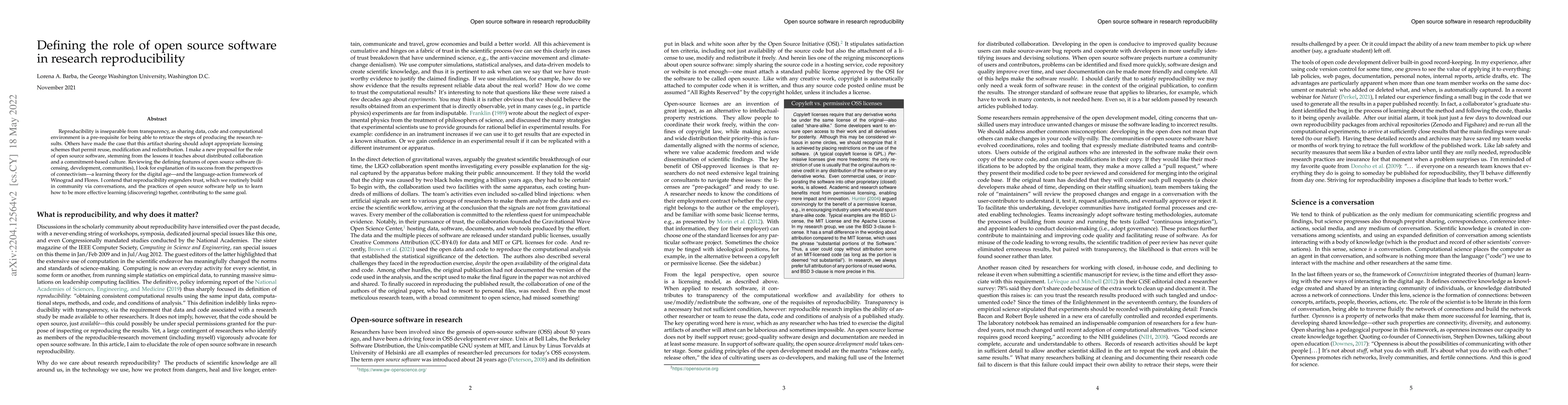 Reproducibility is inseparable from transparency, as sharing data, code and computational environment is a pre-requisite for being able to retrace the steps of producing the research results. Others have made the case that this artifact sharing should adopt appropriate licensing schemes that permit reuse, modification and redistribution. I make a new proposal for the role of open source software, stemming from the lessons it teaches about distributed collaboration and a commitment-based culture. Reviewing the defining features of open source software (licensing, development, communities), I look for explanation of its success from the perspectives of connectivism -- a learning theory for the digital age -- and the language-action framework of Winograd and Flores. I contend that reproducibility engenders trust, which we routinely build in community via conversations, and the practices of open source software help us to learn how to be more effective learning (discovering) together, contributing to the same goal.