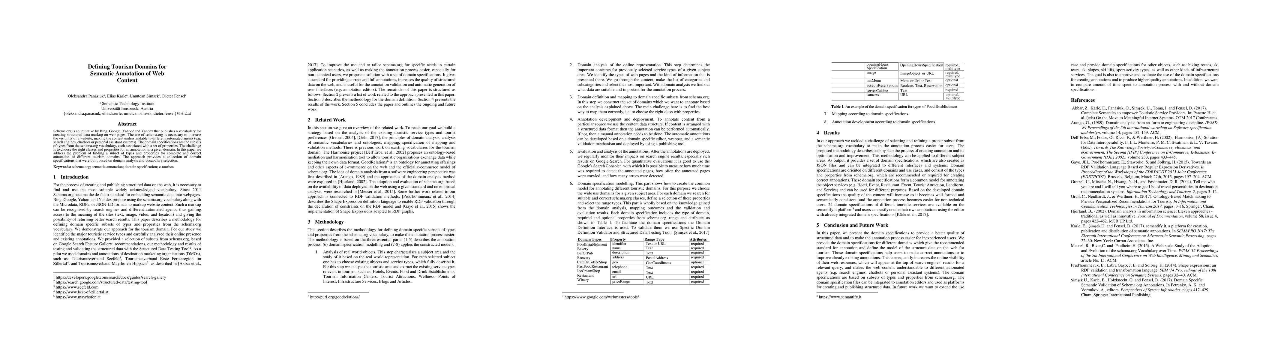 This paper explores the use of schema.org vocabulary to semantically annotate web content within tourism domains, aiming to enhance content visibility for automated agents. It proposes a method for selecting appropriate schema.org classes and properties to accurately annotate different tourism domains based on domain analysis and vocabulary selection.