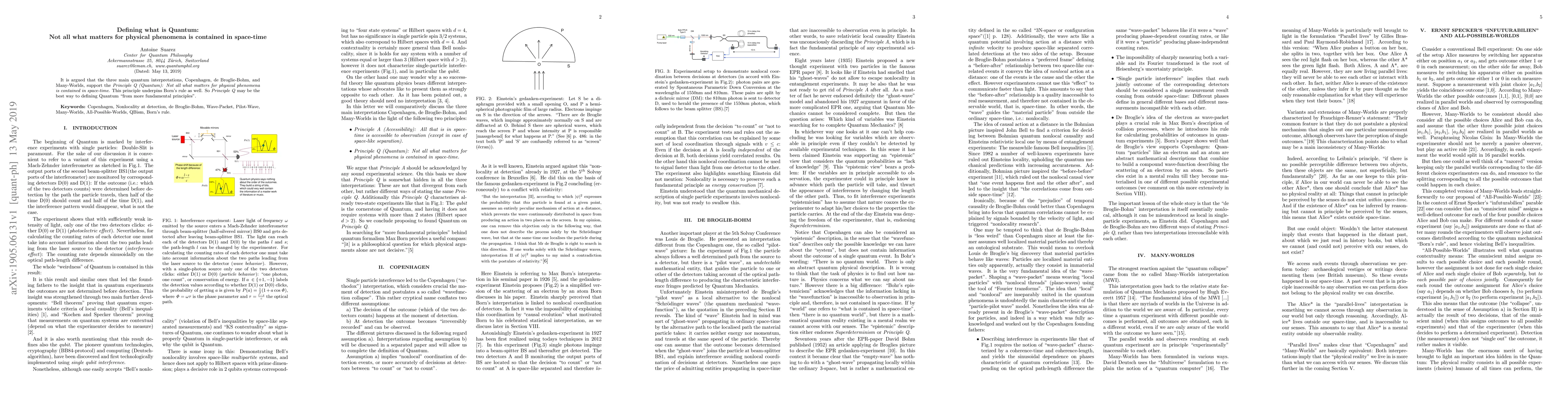 Summary: The paper argues that the three main quantum interpretations support Principle Q, asserting that not all factors influencing physical phenomena are confined to space-time. This principle underpins Born's rule and may offer a fundamental definition of quantum phenomena.