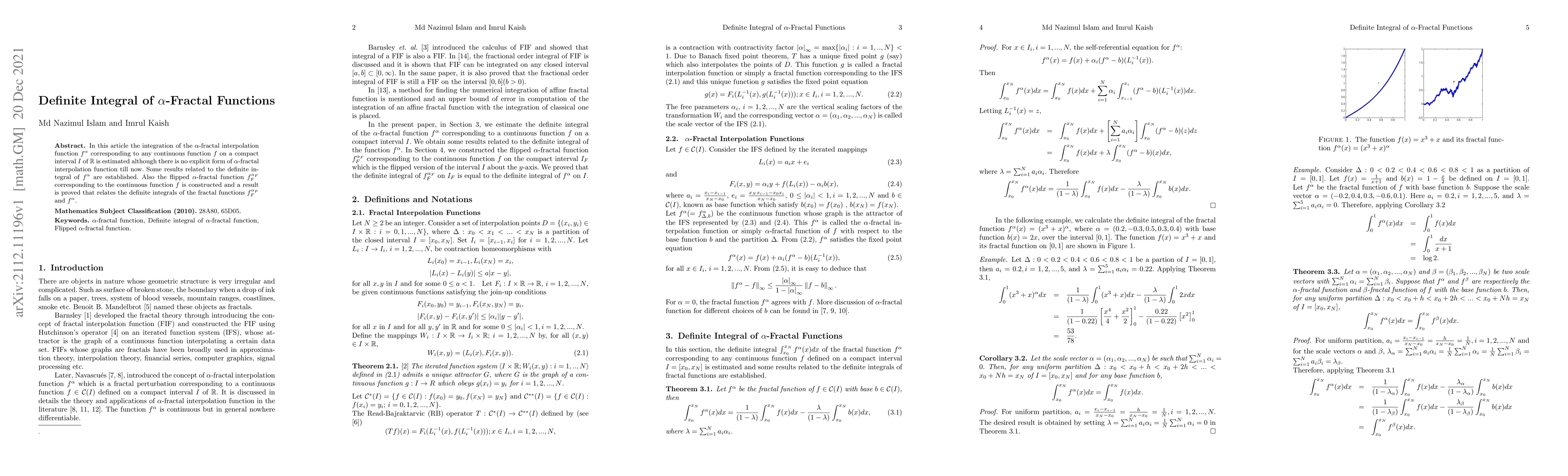 This paper estimates the definite integral of $\alpha$-fractal interpolation functions $f^{\alpha}$ for continuous functions on a compact interval, despite the absence of an explicit form. It also constructs flipped $\alpha$-fractal functions $f_{F}^{\alpha_{F}}$ and proves a relationship between their definite integrals.