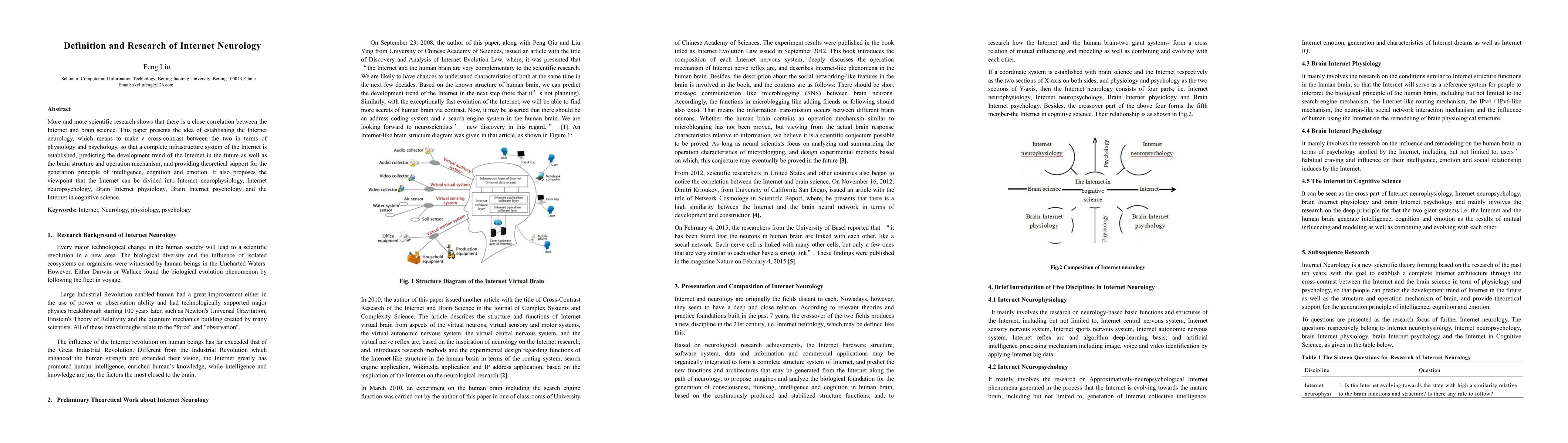This paper proposes a new field of study called Internet Neurology, which explores the relationship between the internet and brain science to understand intelligence, cognition, and emotion. It suggests dividing the internet into five subfields: neurophysiology, neuropsychology, brain physiology, brain psychology, and cognitive science.