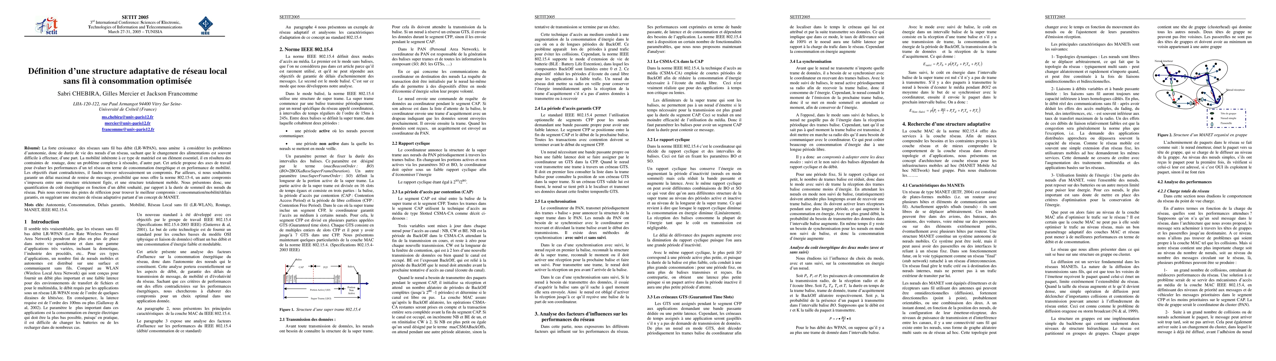The strong growth of low rate wireless personal area networks (LR-WPAN), leads us to consider the autonomy problems, thus node lifetime in a network, knowing that the power supplies replacement is often difficult to realize. The inherent mobility in this type of equipment is an essential element. It will provide routing constraints, so a complex problem to solve. This article provides work lines to assess the performance of such a network in terms of energy consumption and mobility. The objectives are contradictory; it will necessarily find a compromise. In addition, if we want to guarantee a maximum delay for the transmitted messages, possibility offered by the IEEE 802.15-4 standard, another compromise necessitate a strictly fixed structure and a fully mobile structure. Therefore, we present a quantization of the energy cost related to the desired data rate and compared to the sleep duration of nodes in the network. Then, we open reflexion lines to find the best compromise: consumption / mobility / guaranteed deadlines, in suggesting an adaptive network structure from a concept of MANET.