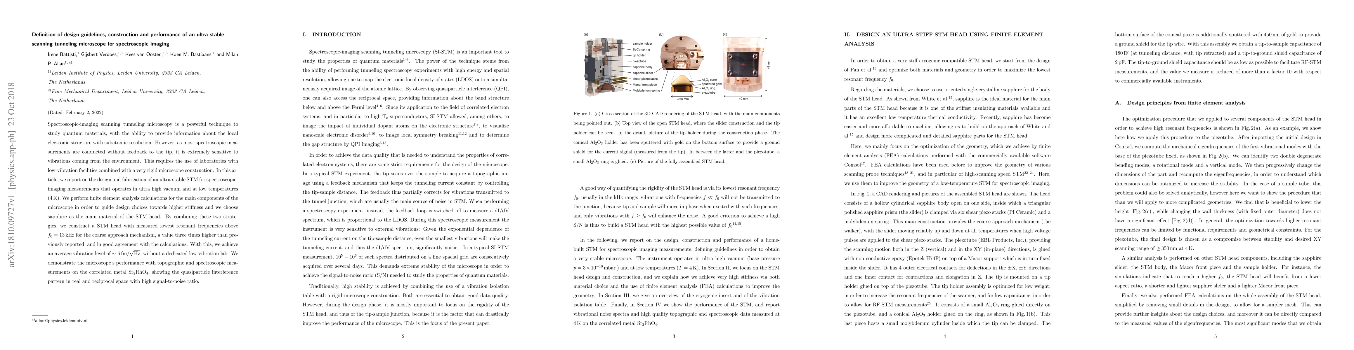 This paper details the design and construction of an ultra-stable scanning tunneling microscope (STM) for spectroscopic imaging, achieving high stiffness and low vibration levels through finite element analysis and sapphire material selection. The microscope demonstrates exceptional performance in topographic and spectroscopic measurements on Sr2RhO4.