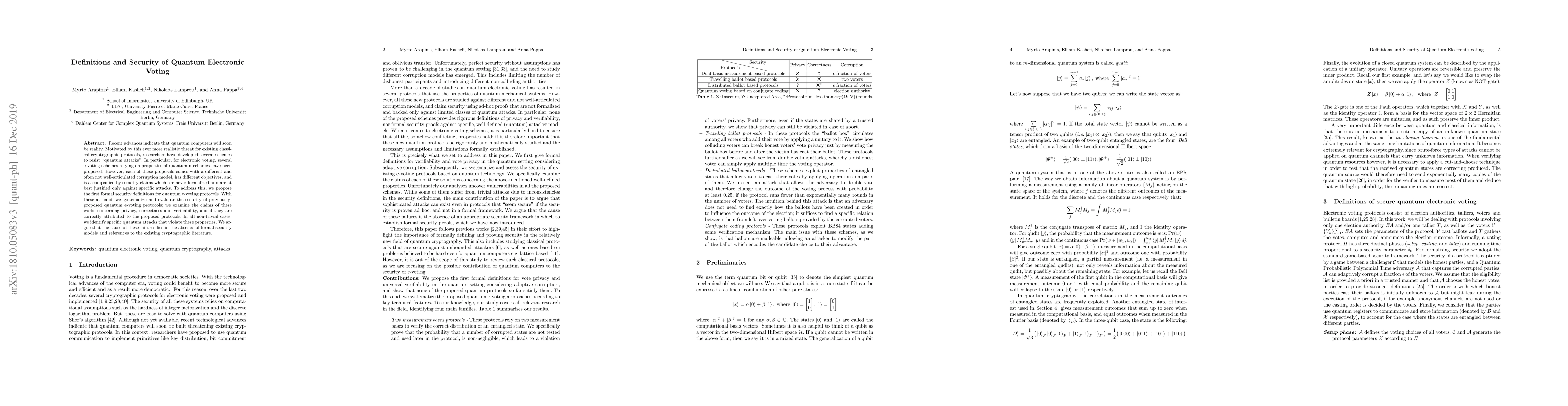Recent advances indicate that quantum computers will soon be reality. Motivated by this ever more realistic threat for existing classical cryptographic protocols, researchers have developed several schemes to resist "quantum attacks". In particular, for electronic voting, several e-voting schemes relying on properties of quantum mechanics have been proposed. However, each of these proposals comes with a different and often not well-articulated corruption model, has different objectives, and is accompanied by security claims which are never formalized and are at best justified only against specific attacks. To address this, we propose the first formal security definitions for quantum e-voting protocols. With these at hand, we systematize and evaluate the security of previously-proposed quantum e-voting protocols; we examine the claims of these works concerning privacy, correctness and verifiability, and if they are correctly attributed to the proposed protocols. In all non-trivial cases, we identify specific quantum attacks that violate these properties. We argue that the cause of these failures lies in the absence of formal security models and references to the existing cryptographic literature.