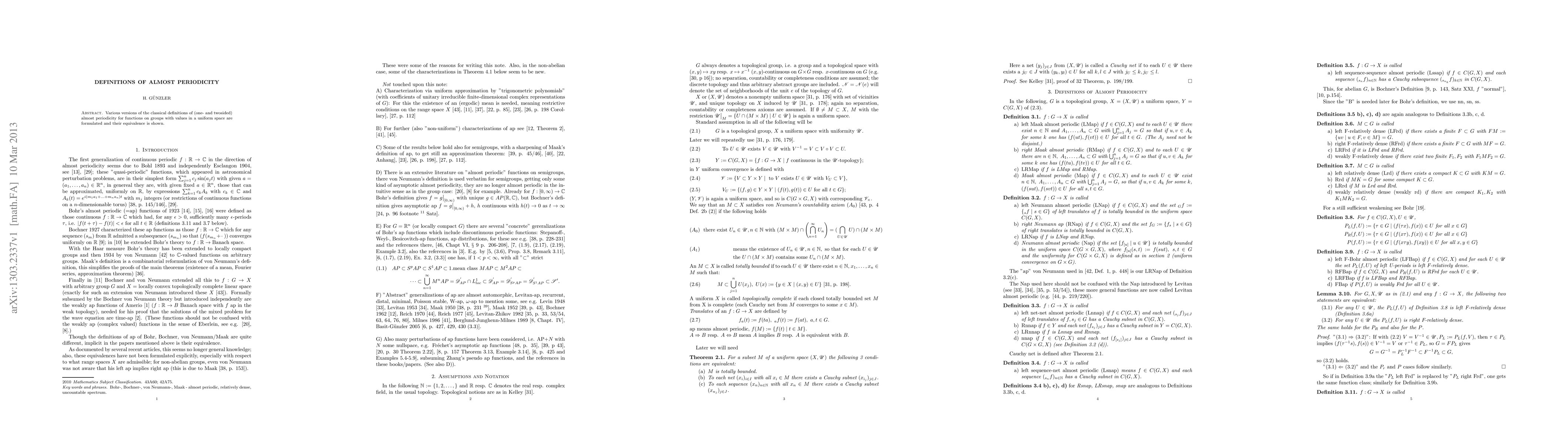 Various versions of the classical definitions of (one- and twosided) almost periodicity for functions on groups with values in a uniform space are formulated and their equivalence is shown.