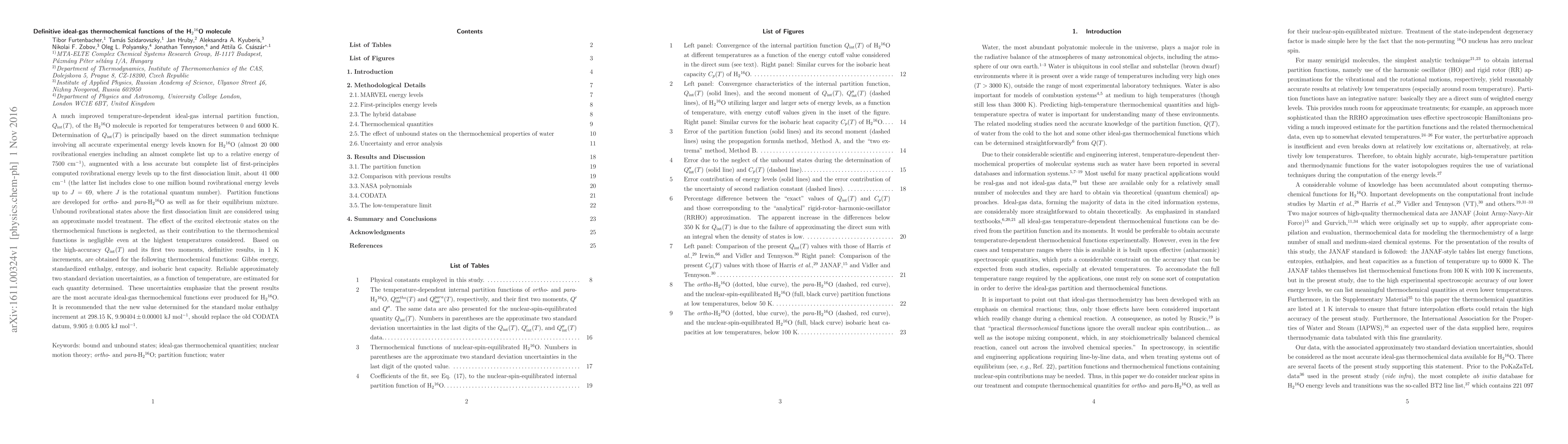 $Q_{\rm int}$($T$), of the H$_2$$^{16}$O molecule is reported for temperatures between 0 and 6000 K. Determination of $Q_{\rm int}$($T$) is principally based on the direct summation technique involving all accurate experimental energy levels known for H$_2$$^{16}$O (almost 20~000 rovibrational energies including an almost complete list up to a relative energy of 7500 \cm), augmented with a less accurate but complete list of first-principles computed rovibrational energy levels up to the first dissociation limit, about 41~000 \cm\ (the latter list includes close to one million bound rovibrational energy levels up to $J = 69$, where $J$ is the rotational quantum number). Partition functions are developed for {\it ortho}- and {\it para}-H$_2$$^{16}$O as well as for their equilibrium mixture. Unbound rovibrational states above the first dissociation limit are considered using an approximate model treatment. The effect of the excited electronic states on the thermochemical functions is neglected, as their contribution to the thermochemical functions is negligible even at the highest temperatures considered. Based on the high-accuracy $Q_{\rm int}$($T$) and its first two moments, definitive results, in 1~K increments, are obtained for the following thermochemical functions: Gibbs energy, standardized enthalpy, entropy, and isobaric heat capacity. Reliable approximately two standard deviation uncertainties, as a function of temperature, are estimated for each quantity determined. These uncertainties emphasize that the present results are the most accurate ideal-gas thermochemical functions ever produced for H$_2$$^{16}$O. It is recommended that the new value determined for the standard molar enthalpy increment at 298.15~K, $9.90404 \pm 0.00001$ kJ~mol$^{-1}$, should replace the old CODATA datum, $9.905 \pm 0.005$ kJ~mol$^{-1}$.