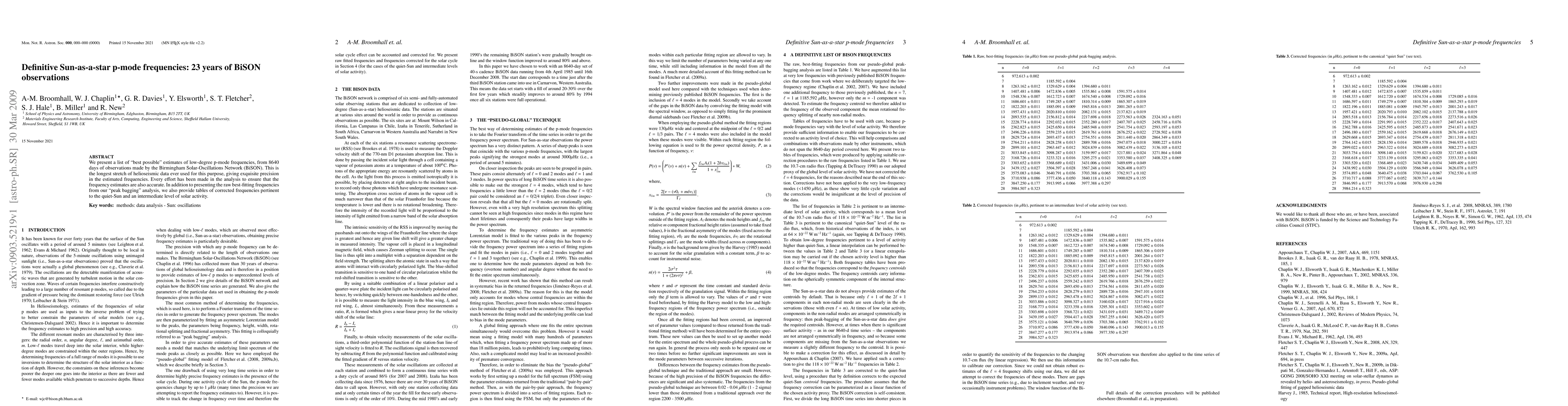 This paper presents highly precise estimates of low-degree p-mode frequencies from 23 years of BiSON observations, offering the longest dataset used for helioseismic analysis. The study provides corrected frequencies for quiet-Sun conditions and an intermediate solar activity level, ensuring both accuracy and precision.