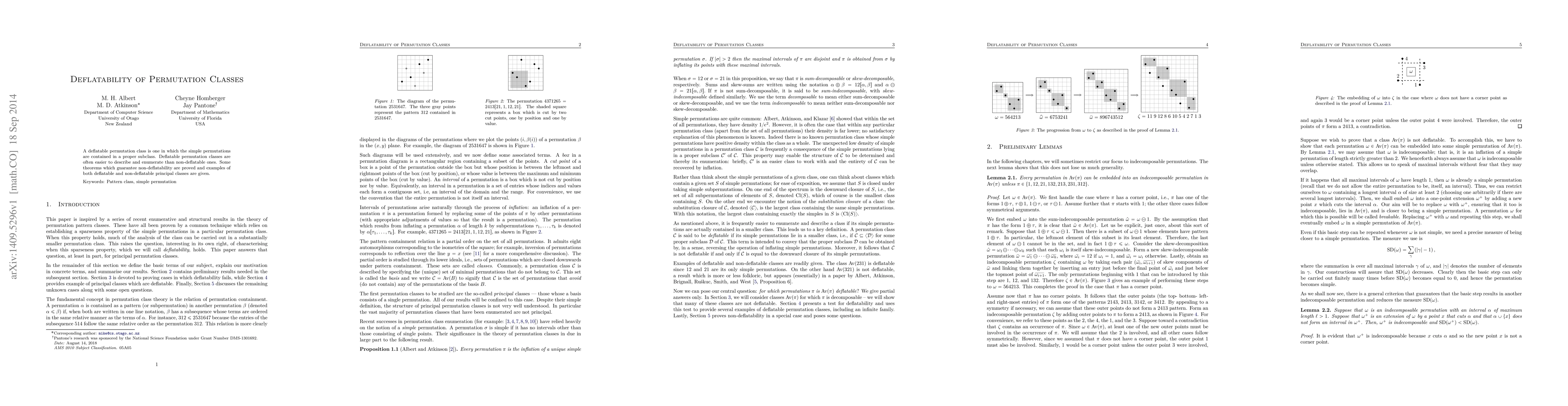 This paper explores deflatable permutation classes, where simple permutations fit within a proper subclass, making them easier to describe and enumerate. It proves theorems ensuring non-deflatability and provides examples of both deflatable and non-deflatable principal classes.