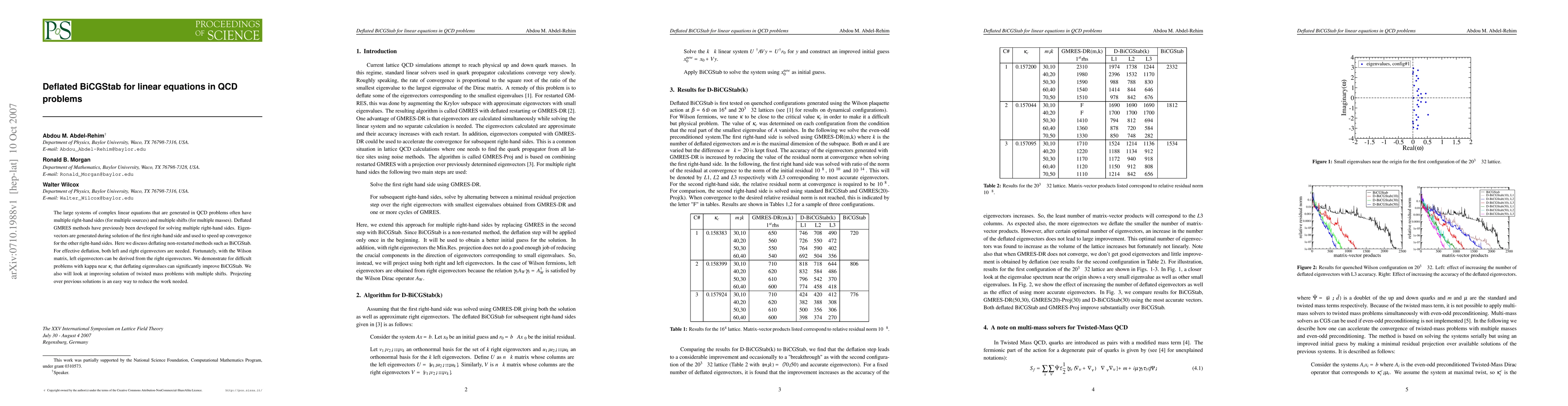 This paper proposes a deflated BiCGStab method for solving large linear systems in QCD problems, utilizing both left and right eigenvectors for effective deflation. The approach significantly improves convergence for problems near critical kappa values and extends to twisted mass problems with multiple shifts, reducing computational effort through projection over previous solutions.