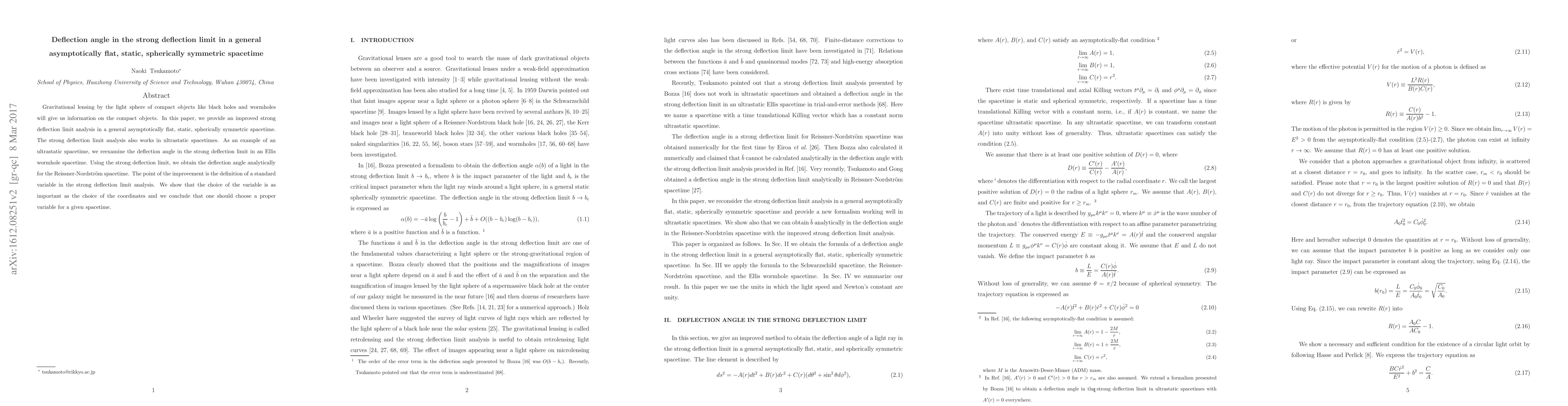 This paper improves the strong deflection limit analysis in general asymptotically flat, static, spherically symmetric spacetimes, demonstrating its application in ultrastatic spacetimes like the Ellis wormhole. It analytically determines the deflection angle for the Reissner-Nordstrom spacetime, emphasizing the importance of selecting an appropriate variable for accurate analysis.