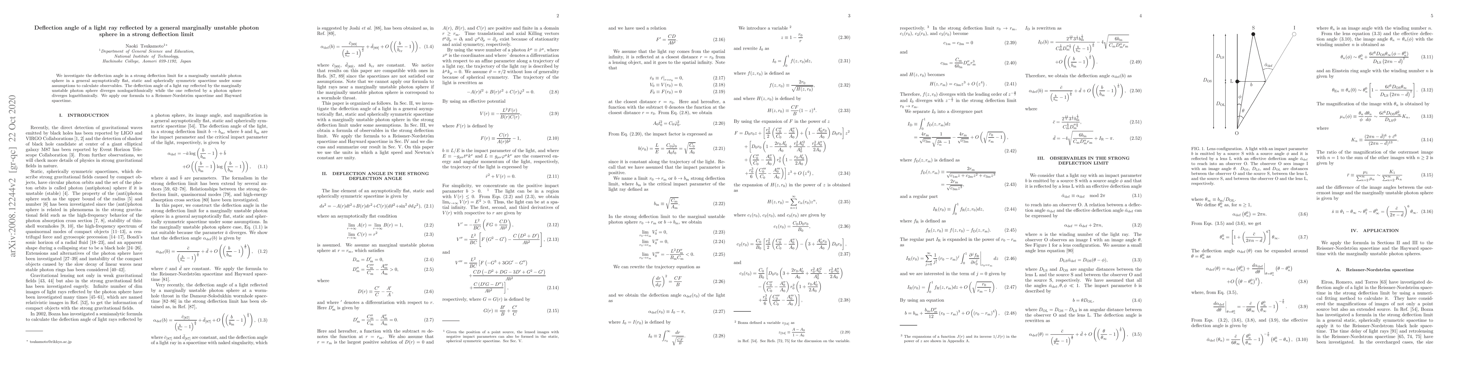 We investigate the deflection angle in a strong deflection limit for a marginally unstable photon sphere in a general asymptotically flat, static and spherically symmetric spacetime under some assumptions to calculate observables. The deflection angle of a light ray reflected by the marginally unstable photon sphere diverges nonlogarithmically while the one reflected by a photon sphere diverges logarithmically. We apply our formula to a Reissner-Nordstrom spacetime and Hayward spacetime.