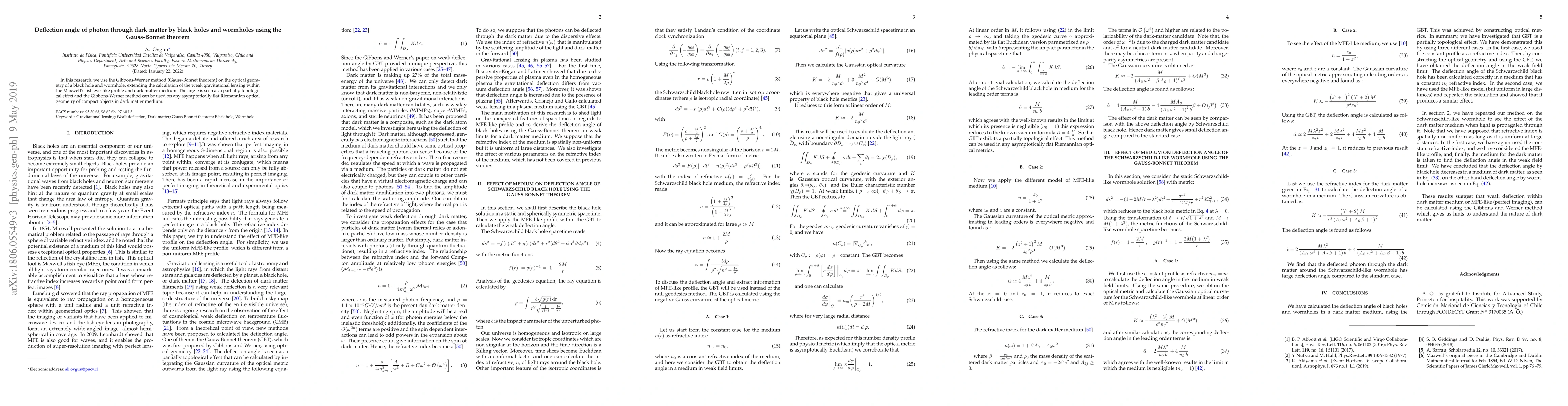 This paper applies the Gibbons-Werner method (Gauss-Bonnet theorem) to calculate the deflection angle of photons passing through black holes and wormholes in a dark matter medium, revealing a partially topological effect in weak gravitational lensing. The method is shown to be applicable to any asymptotically flat Riemannian optical geometry of compact objects.