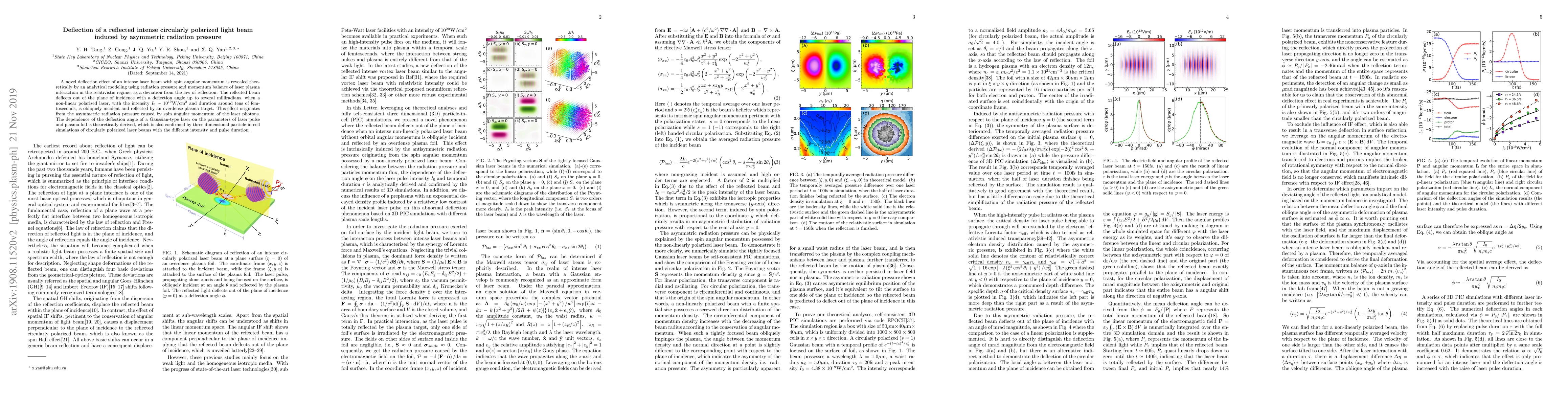 This paper presents an analytical model for the deflection of an intense circularly polarized laser beam reflected by an overdense plasma, revealing a novel effect due to asymmetric radiation pressure from the beam's spin angular momentum. The deflection angle, up to several milliradians, is derived and confirmed by simulations.