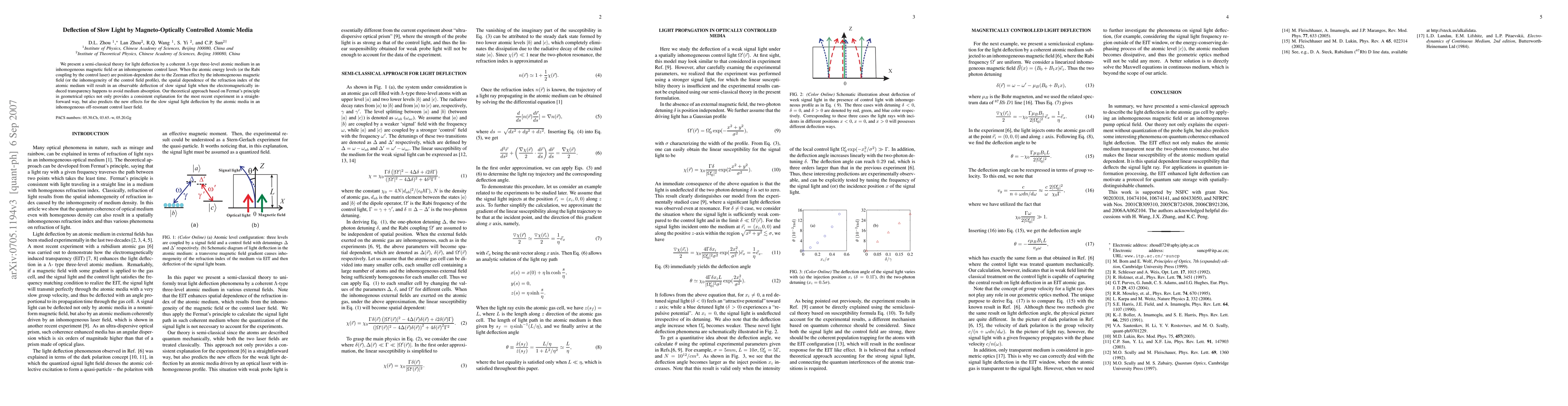 This paper presents a semi-classical theory explaining the deflection of slow light through a coherent three-level atomic medium under an inhomogeneous magnetic field or control laser. The spatial dependence of the medium's refraction index due to the Zeeman effect or control field inhomogeneity results in observable deflection of slow signal light, offering new predictions for such effects.