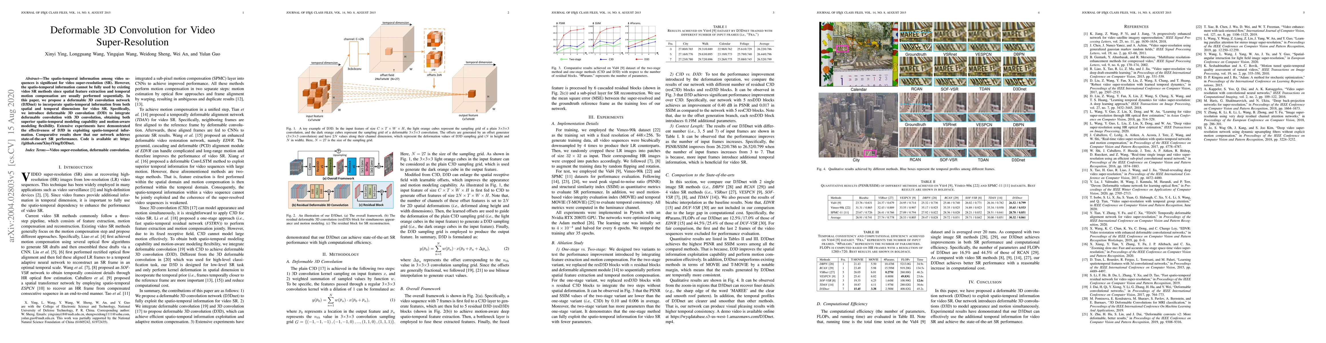 This paper proposes a deformable 3D convolution network (D3Dnet) to enhance video super-resolution by integrating spatio-temporal information through deformable 3D convolution, achieving superior modeling flexibility and state-of-the-art performance. The method outperforms existing sequential methods by utilizing both spatial and temporal dimensions effectively.