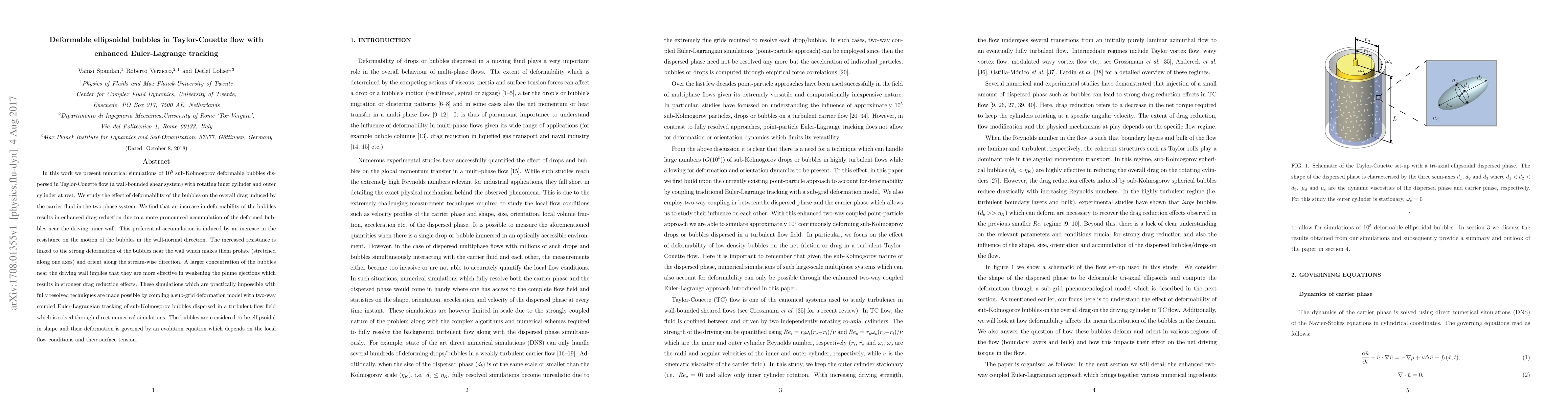 This study numerically investigates deformable ellipsoidal bubbles in Taylor-Couette flow, revealing that increased bubble deformability leads to enhanced drag reduction due to preferential accumulation near the inner wall, which weakens plume ejections. The simulations utilize a sub-grid deformation model coupled with Euler-Lagrange tracking in a turbulent flow field.