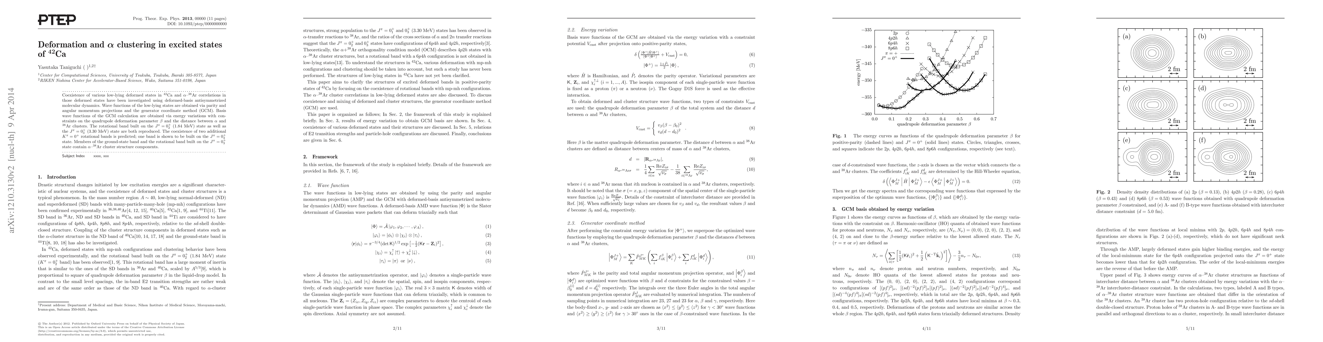 The coexistence of various low-lying deformed states in $^{42}$Ca and $\alpha$--$^{38}$Ar correlations in those deformed states have been investigated using deformed-basis antisymmetrized molecular dynamics. Wave functions of the low-lying states are obtained via parity and angular momentum projections and the generator coordinate method (GCM). Basis wave functions of the GCM calculation are obtained via energy variations with constraints on the quadrupole deformation parameter $\beta$ and the distance between $\alpha$ and $^{38}$Ar clusters. The rotational band built on the $J^\pi = 0_2^+$ (1.84 MeV) state as well as the $J^\pi = 0_3^+$ (3.30 MeV) state are both reproduced. The coexistence of two additional $K^\pi = 0^+$ rotational bands is predicted; one band is shown to be built on the $J^\pi = 0_3^+$ state. Members of the ground-state band and the rotational band built on the $J^\pi = 0_3^+$ state contain $\alpha$--$^{38}$Ar cluster structure components.