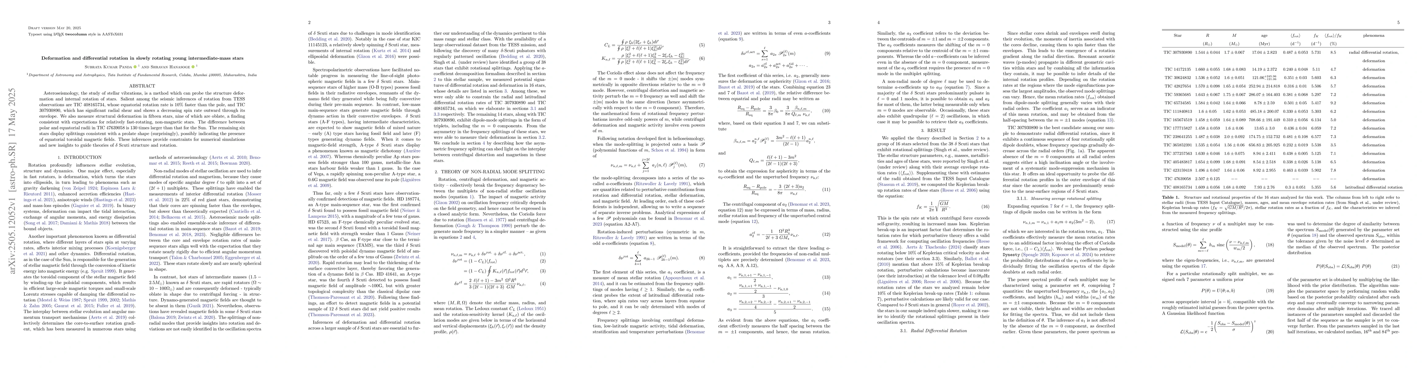 The research utilizes asteroseismology, examining stellar vibrations to infer structural deformation and internal rotation of stars, specifically focusing on slowly rotating young intermediate-mass stars observed by TESS.