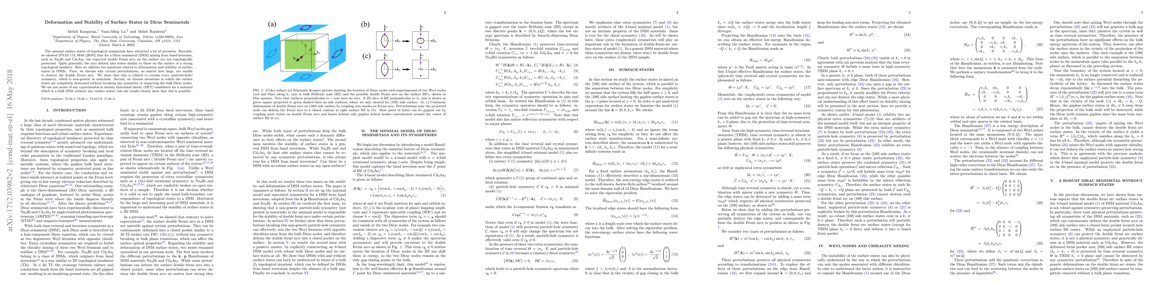 This paper investigates the deformation and stability of surface states in Dirac semimetals, revealing that while perturbations cannot destroy the double Fermi arcs due to extra particle-hole symmetry, certain conditions can completely eliminate surface states without affecting the bulk Dirac nodes or symmetries.