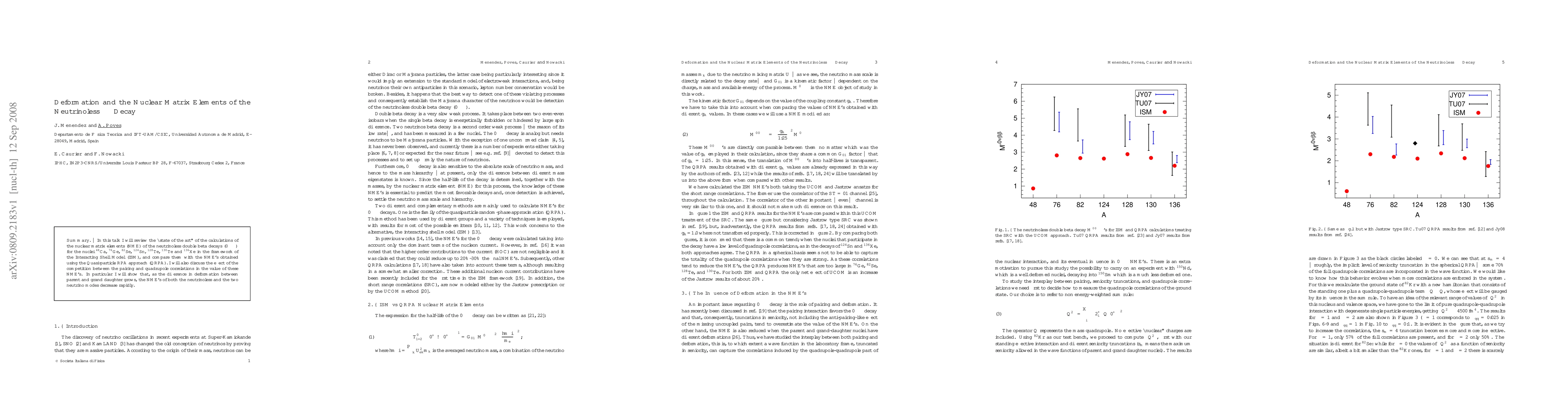 This paper reviews the latest calculations of nuclear matrix elements for neutrinoless double beta decay in various isotopes using the Interacting Shell Model and Quasi-particle RPA, highlighting the impact of deformation and competition between pairing and quadrupole correlations on these elements. It finds that as the deformation difference between parent and daughter nuclei increases, the matrix elements decrease significantly.