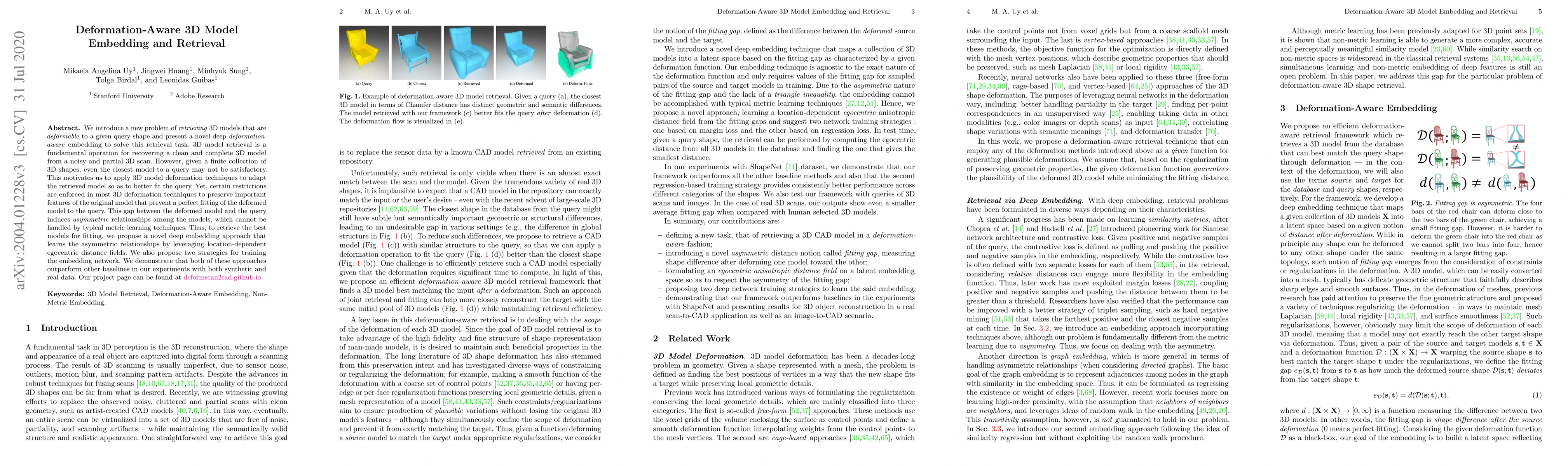 This paper introduces a novel deep deformation-aware embedding for retrieving 3D models that can be deformed to match a given query shape, addressing the limitations of existing metric learning techniques. The proposed method leverages location-dependent egocentric distance fields to learn asymmetric relationships, significantly outperforming baselines in both synthetic and real data experiments.