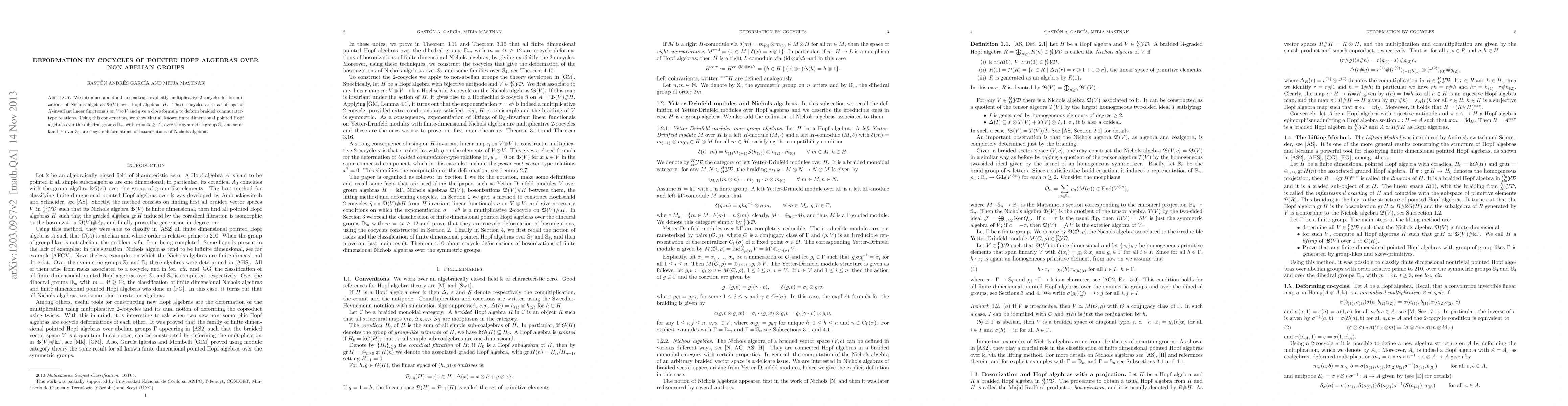 This paper introduces a method for constructing multiplicative 2-cocycles for bosonizations of Nichols algebras over Hopf algebras, providing a formula to deform braided commutator-type relations. It demonstrates that various finite-dimensional pointed Hopf algebras over dihedral and symmetric groups are cocycle deformations of these bosonizations.