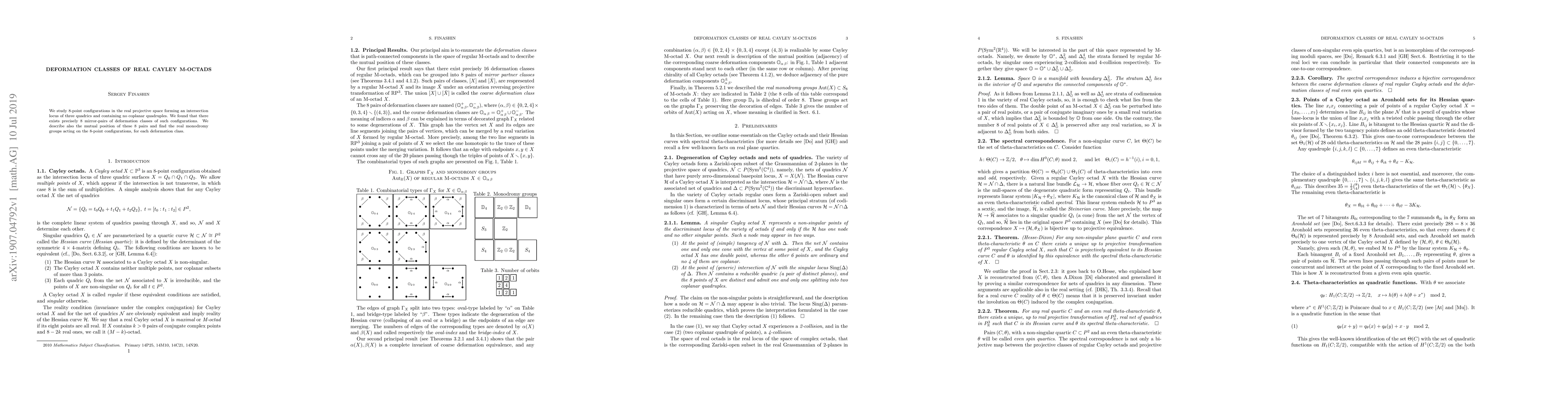 We study 8-point configurations in the real projective space forming an intersection locus of three quadrics and containing no coplanar quadruples. We found that there exists precisely 8 mirror-pairs of deformation classes of such configurations. We describe also the mutual position of these 8 pairs and find the real monodromy groups acting on the 8-point configurations, for each deformation class.