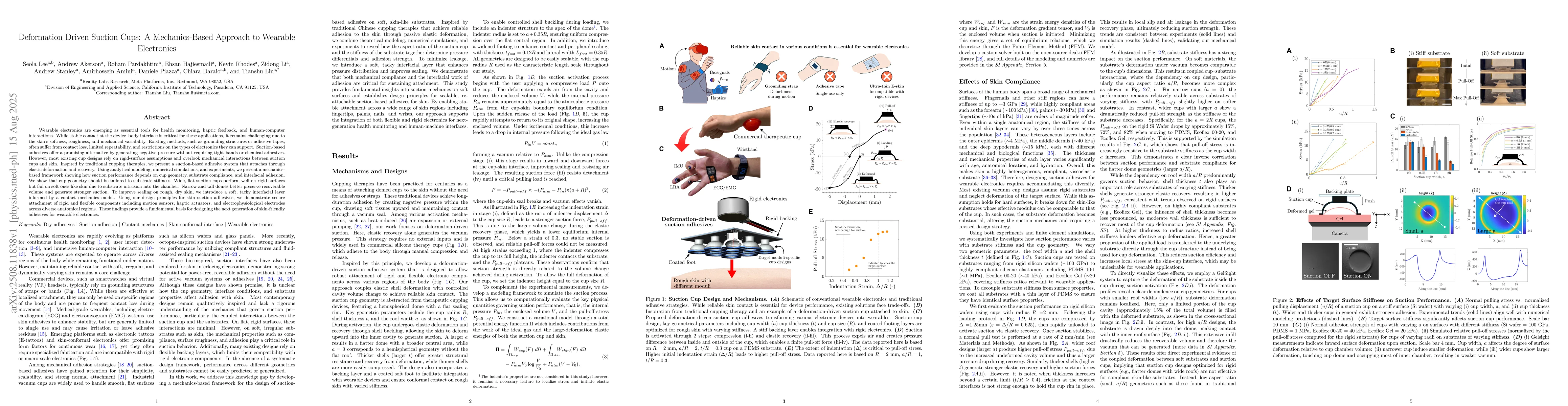 Wearable electronics are emerging as essential tools for health monitoring, haptic feedback, and human-computer interactions. While stable contact at the device-body interface is critical for these applications, it remains challenging due to the skin's softness, roughness, and mechanical variability. Existing methods, such as grounding structures or adhesive tapes, often suffer from contact loss, limited repeatability, and restrictions on the types of electronics they can support. Suction-based adhesives offer a promising alternative by generating negative pressure without requiring tight bands or chemical adhesives. However, most existing cup designs rely on rigid-surface assumptions and overlook mechanical interactions between suction cups and skin. Inspired by traditional cupping therapies, we present a suction-based adhesive system that attaches through elastic deformation and recovery. Using analytical modeling, numerical simulations, and experiments, we present a mechanics-based framework showing how suction performance depends on cup geometry, substrate compliance, and interfacial adhesion. We show that cup geometry should be tailored to substrate stiffness. Wide, flat suction cups perform well on rigid surfaces but fail on soft ones like skin due to substrate intrusion into the chamber. Narrow and tall domes better preserve recoverable volume and generate stronger suction. To improve sealing on rough, dry skin, we introduce a soft, tacky interfacial layer informed by a contact mechanics model. Using our design principles for skin suction adhesives, we demonstrate secure attachment of rigid and flexible components including motion sensors, haptic actuators, and electrophysiological electrodes across diverse anatomical regions. These findings provide a fundamental basis for designing the next generation of skin-friendly adhesives for wearable electronics.