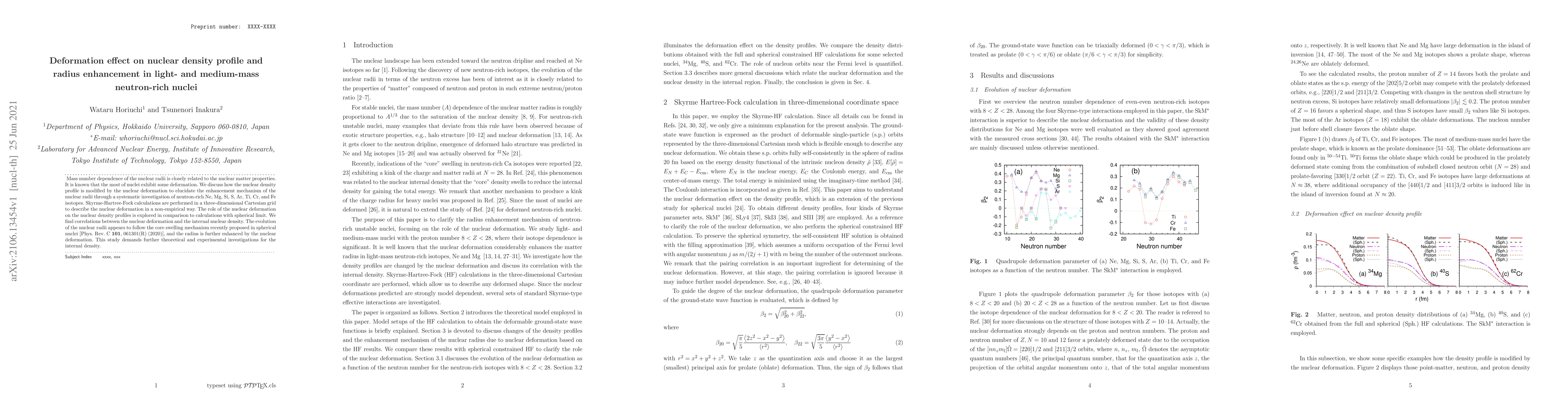 This paper investigates how nuclear deformation affects the density profile and enhances nuclear radii in neutron-rich isotopes of Ne, Mg, Si, S, Ar, Ti, Cr, and Fe using Skyrme-Hartree-Fock calculations. The study finds that deformation correlates with internal nuclear density and supports the core swelling mechanism, suggesting further theoretical and experimental exploration is needed.