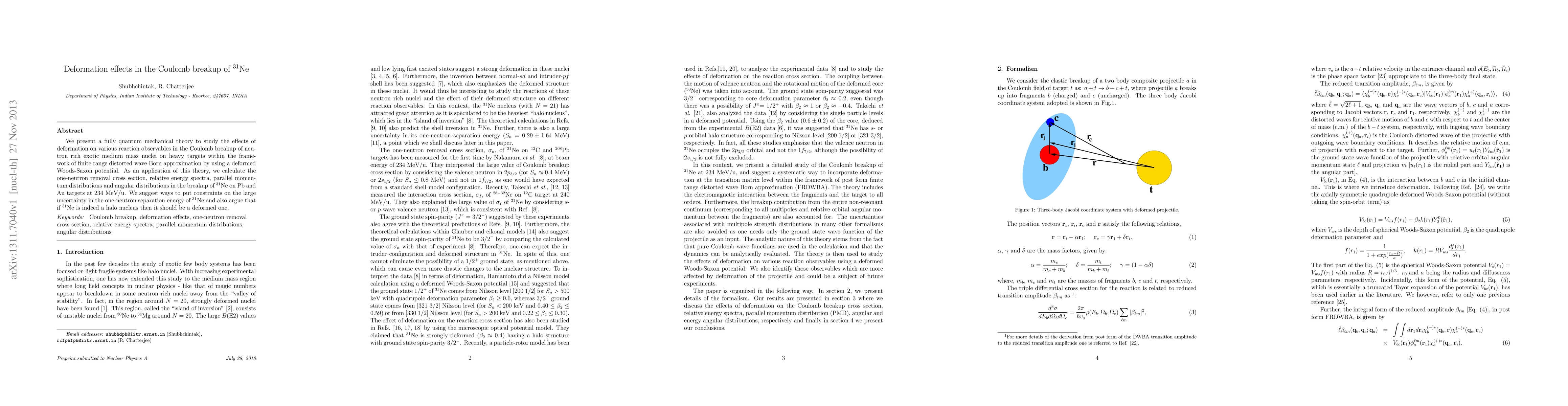 This paper develops a quantum mechanical theory to analyze deformation effects on reaction observables in the Coulomb breakup of the neutron-rich nucleus 31Ne using a deformed Woods-Saxon potential. It calculates various reaction observables for 31Ne breakup on Pb and Au targets, suggesting deformation constraints on 31Ne and indicating it may be a deformed halo nucleus.