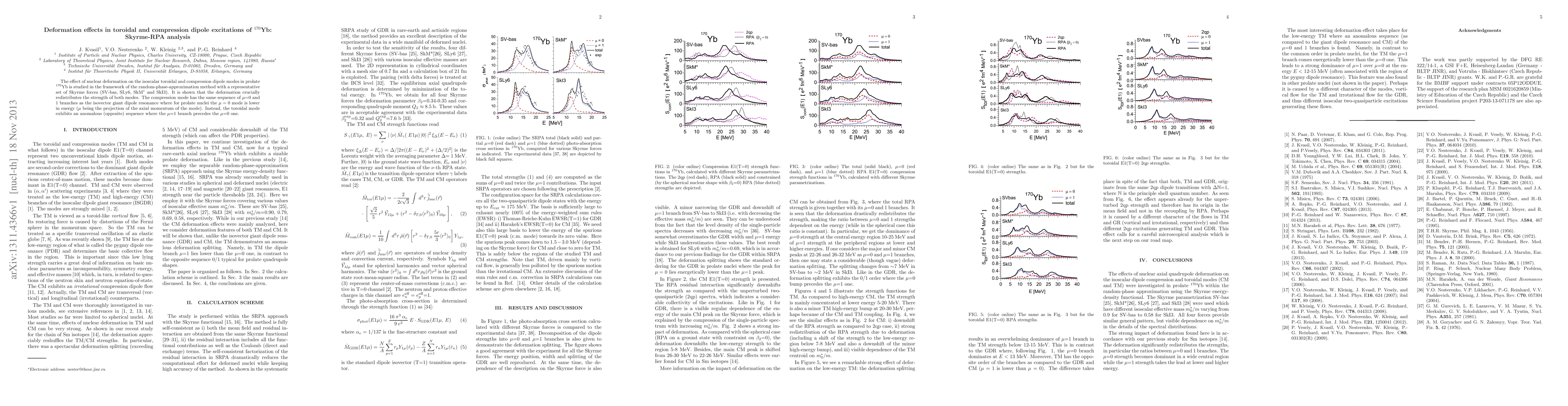 This paper investigates how nuclear deformation influences toroidal and compression dipole excitations in $^{170}$Yb using Skyrme-RPA analysis. The study reveals that deformation significantly alters the strength distribution, with the compression mode following a $\mu$=0 then $\mu$=1 sequence, akin to the isovector giant dipole resonance, while the toroidal mode shows an anomalous $\mu$=1 then $\mu$=0 sequence.