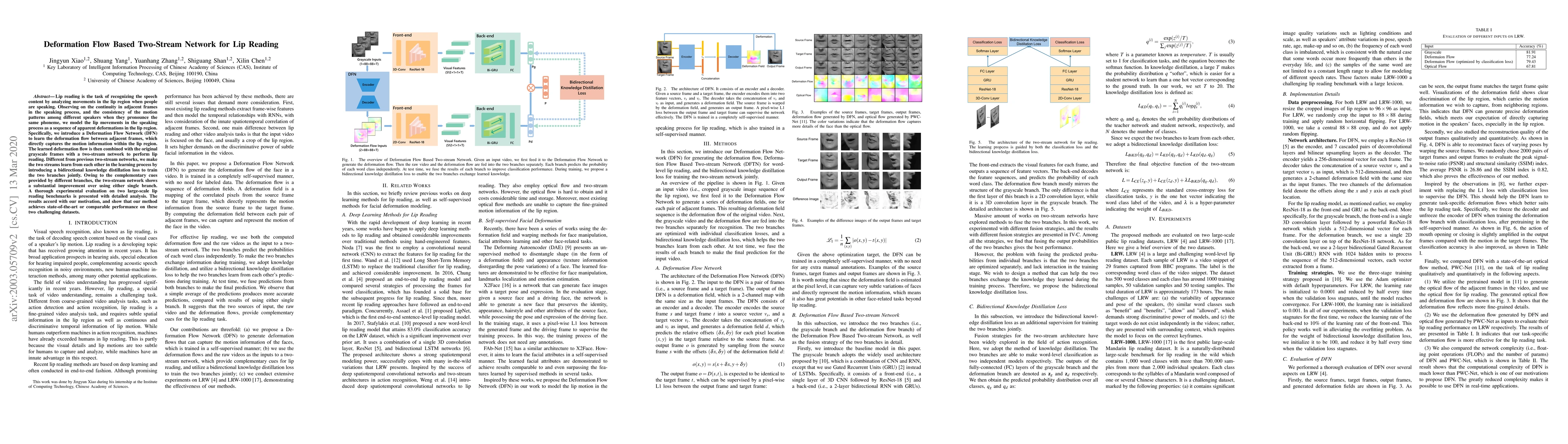 Lip reading is the task of recognizing the speech content by analyzing movements in the lip region when people are speaking. Observing on the continuity in adjacent frames in the speaking process, and the consistency of the motion patterns among different speakers when they pronounce the same phoneme, we model the lip movements in the speaking process as a sequence of apparent deformations in the lip region. Specifically, we introduce a Deformation Flow Network (DFN) to learn the deformation flow between adjacent frames, which directly captures the motion information within the lip region. The learned deformation flow is then combined with the original grayscale frames with a two-stream network to perform lip reading. Different from previous two-stream networks, we make the two streams learn from each other in the learning process by introducing a bidirectional knowledge distillation loss to train the two branches jointly. Owing to the complementary cues provided by different branches, the two-stream network shows a substantial improvement over using either single branch. A thorough experimental evaluation on two large-scale lip reading benchmarks is presented with detailed analysis. The results accord with our motivation, and show that our method achieves state-of-the-art or comparable performance on these two challenging datasets.