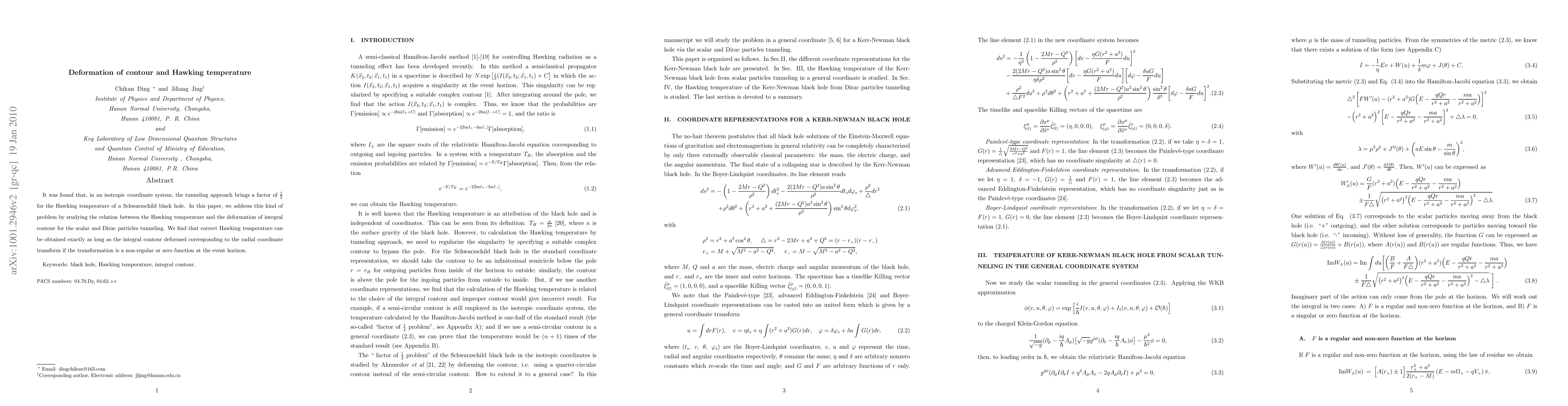 It was found that, in an isotropic coordinate system, the tunneling approach brings a factor of 1/2 for the Hawking temperature of a Schwarzschild black hole. In this paper, we address this kind of problem by studying the relation between the Hawking temperature and the deformation of integral contour for the scalar and Dirac particles tunneling. We find that correct Hawking temperature can be obtained exactly as long as the integral contour deformed corresponding to the radial coordinate transform if the transformation is a non-regular or zero function at the event horizon.