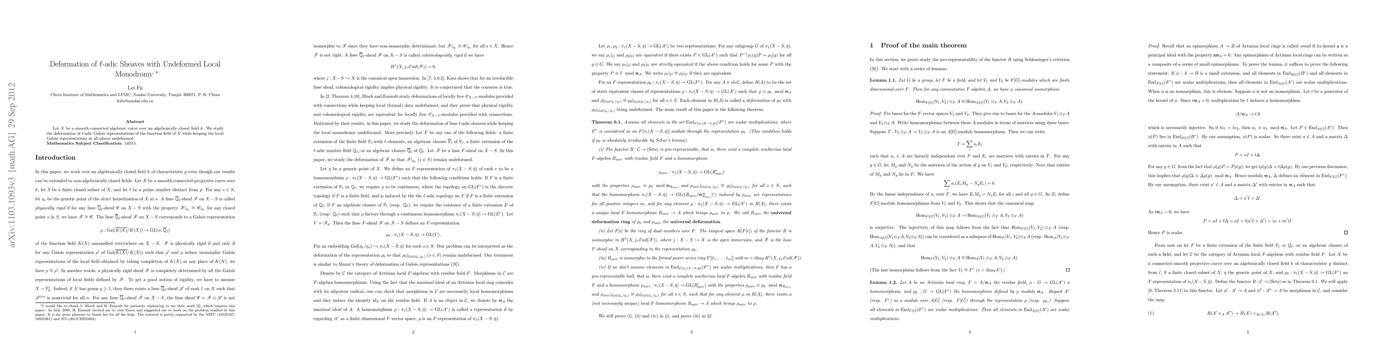 Let $X$ be a smooth connected algebraic curve over an algebraically closed field $k$. We study the deformation of $\ell$-adic Galois representations of the function field of $X$ while keeping the local Galois representations at all places undeformed.