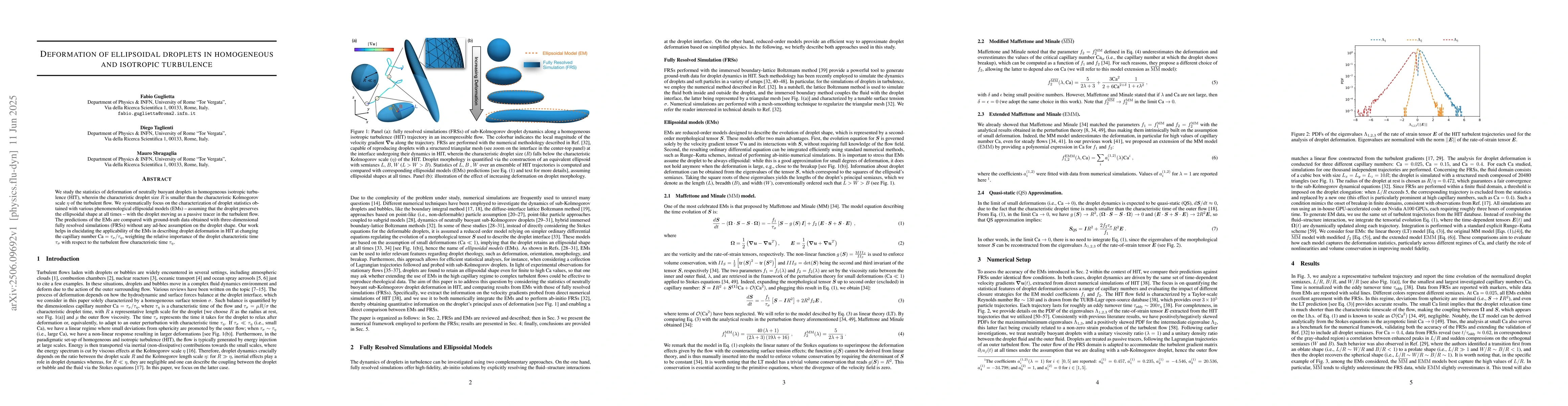 Researchers studied how ellipsoidal droplets deformed in turbulent fluids without ad-hoc assumptions, comparing results with computer simulations for accuracy.