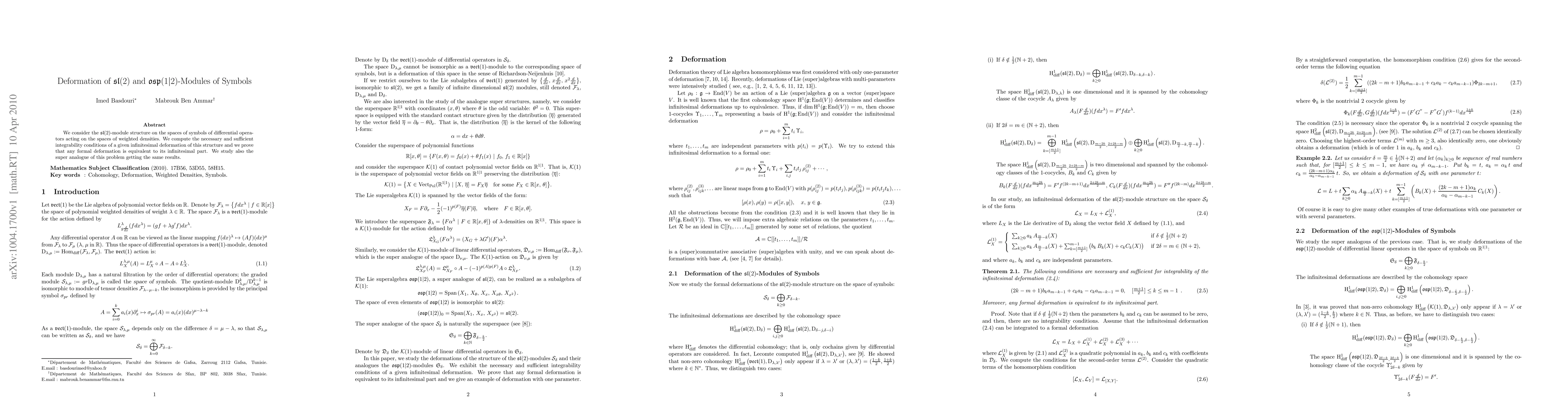 We consider the sl(2)-module structure on the spaces of symbols of differential opera- tors acting on the spaces of weighted densities. We compute the necessary and sufficient integrability conditions of a given infinitesimal deformation of this structure and we prove that any formal deformation is equivalent to its infinitesimal part. We study also the super analogue of this problem getting the same results.